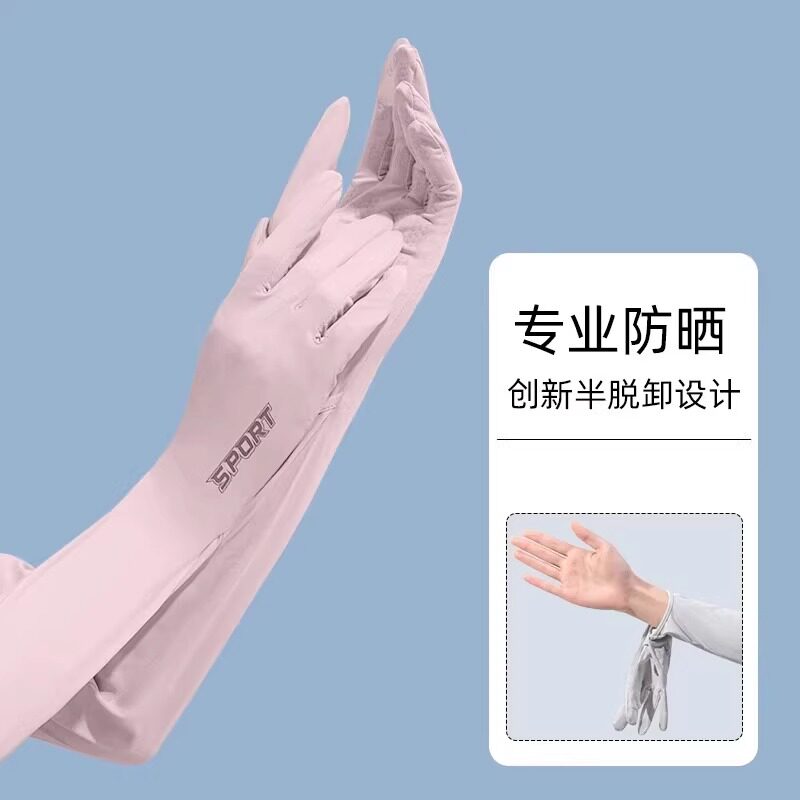 防晒手套女防紫外线夏季骑行电动车冰袖一体手袖宽松开车冰丝袖套