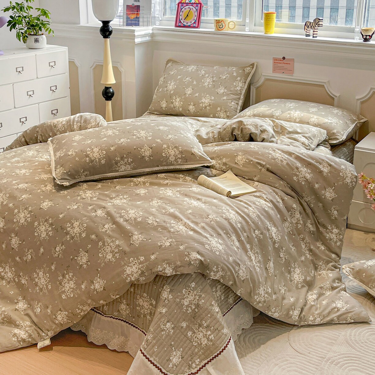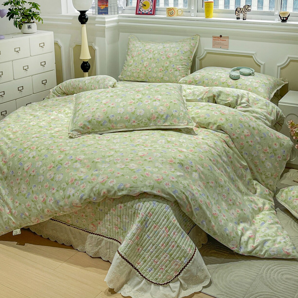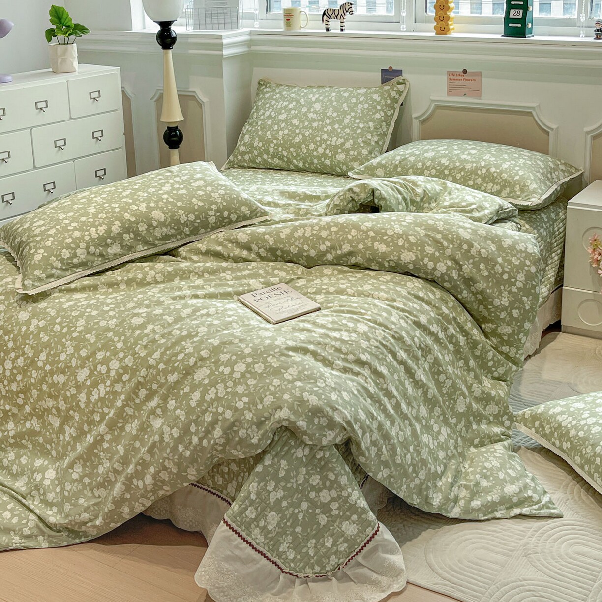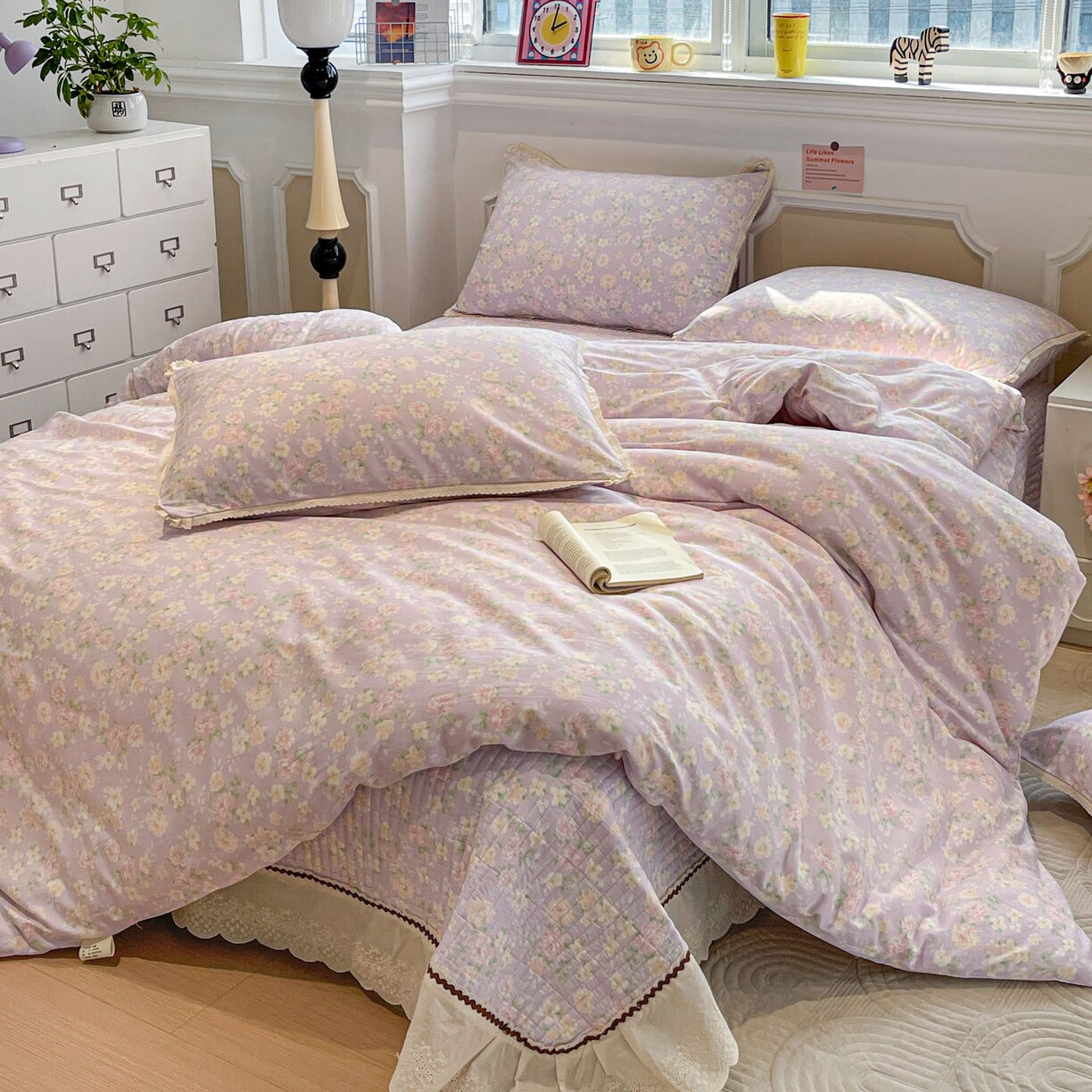 A类花边100%纯棉四件套新款碎花全棉加厚夹棉床盖被套三件套被罩