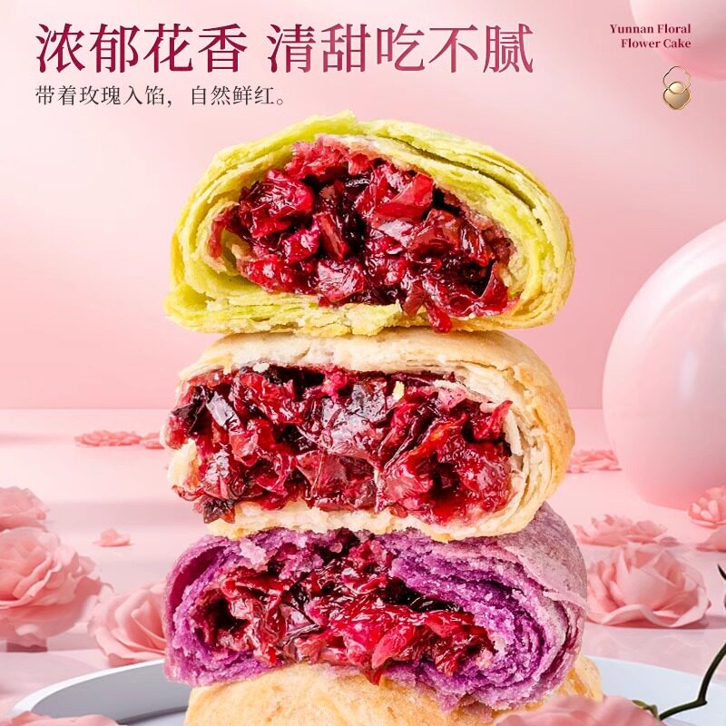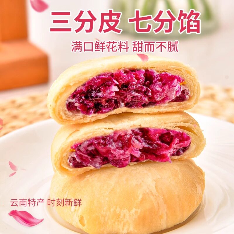 玫瑰鲜花饼云南特产中秋月饼礼盒早餐糕点小吃零食休闲食品