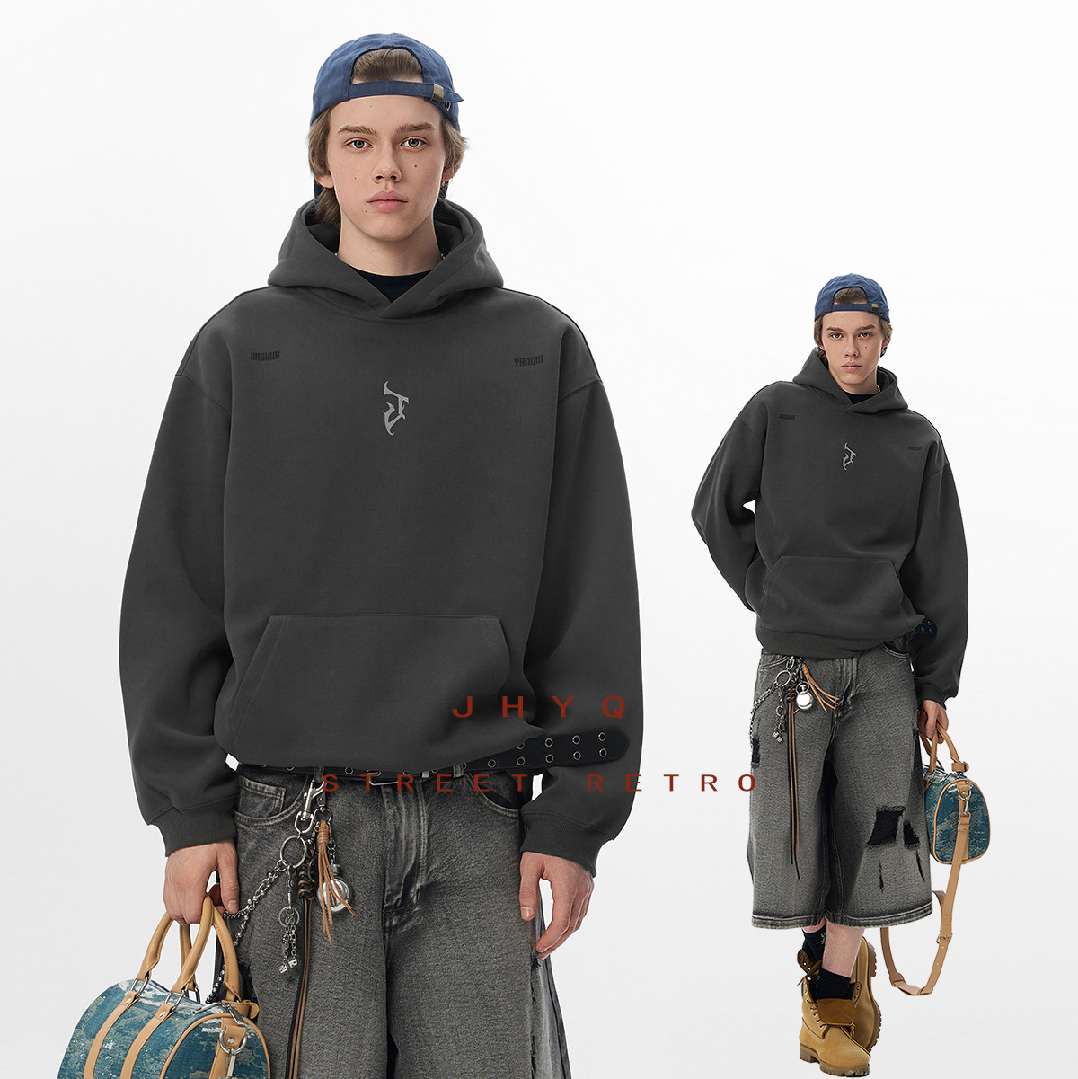 JHYQ净化眼球美式哥特J字母logo连帽卫衣男春秋宽松针织400G帽衫