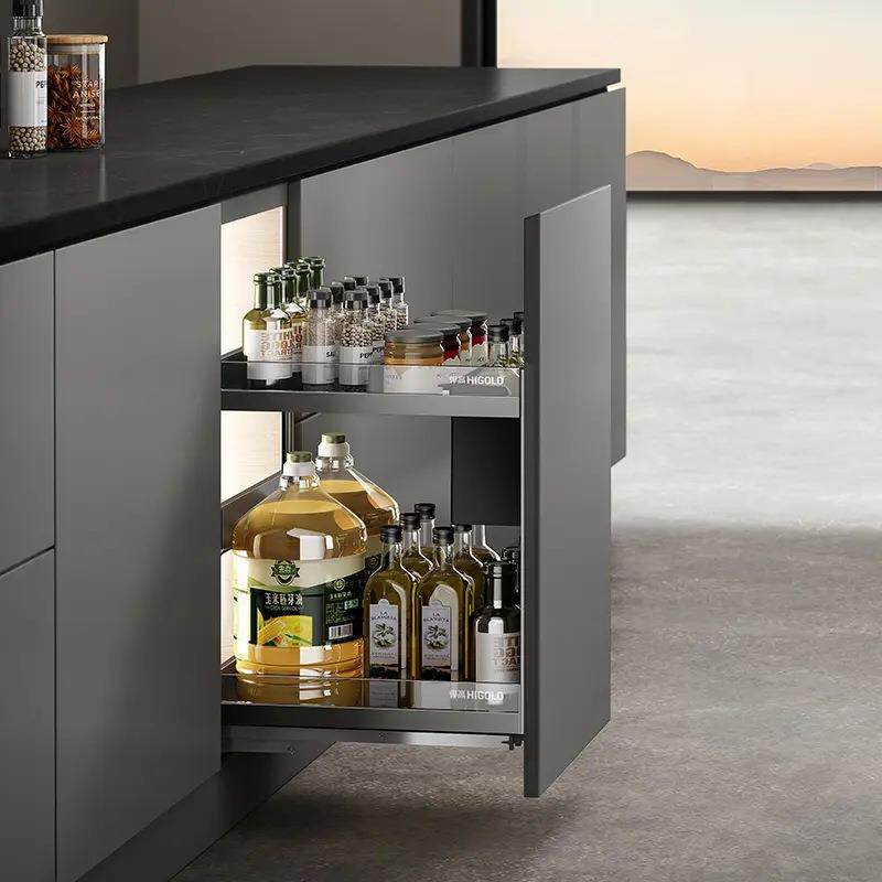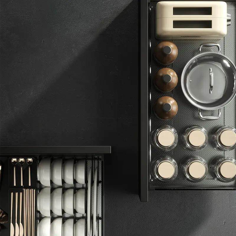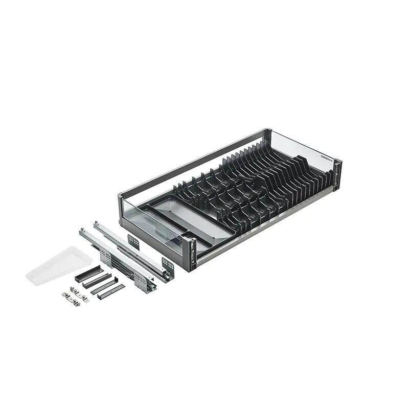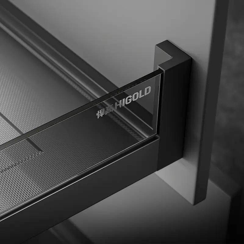 悍高希勒3.0mini拉篮太空铝玻璃抽屉厨房调味篮缓冲三边碗碟篮