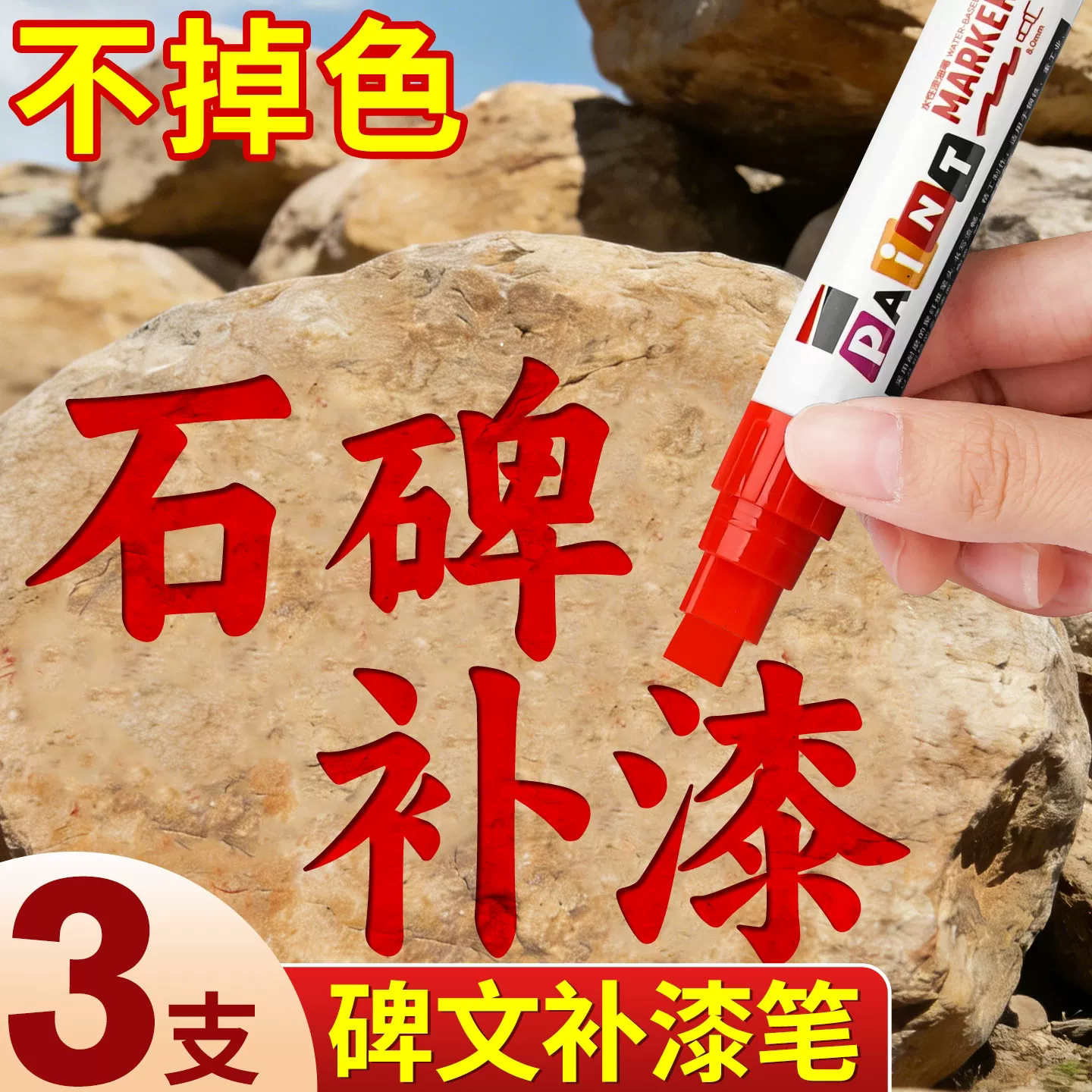 红色石碑补漆笔超粗8mm清明扫墓专用笔金色补色笔墓碑上色笔修复防水不掉色防晒不褪色加粗大号碑文笔黑色绿