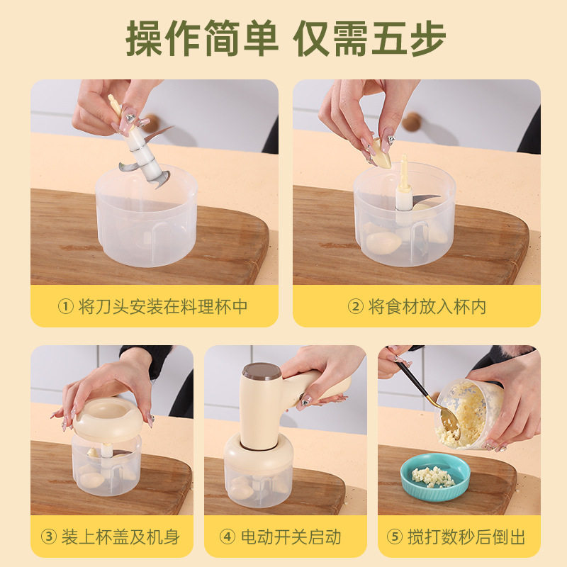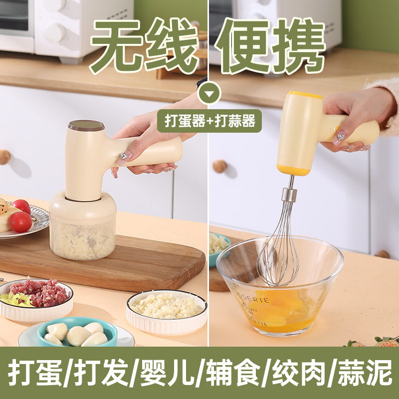 二合一料理机多功能家用打蛋器蒜蓉机无线绞肉机捣蒜器奶油打发器