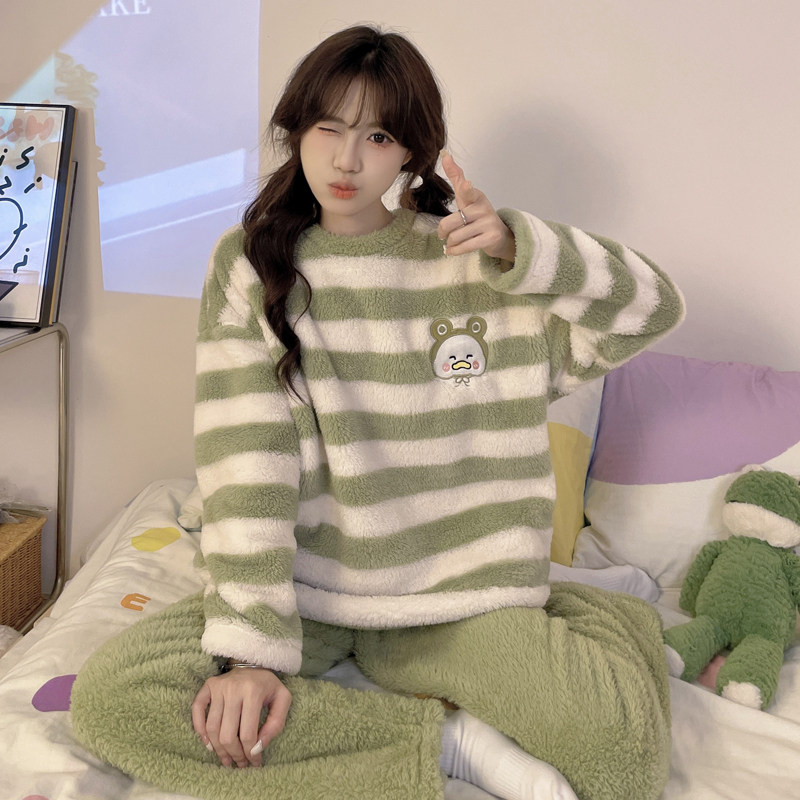 睡衣女冬季加厚保暖珊瑚绒套装2025年新款卡通秋冬款法兰绒家居服