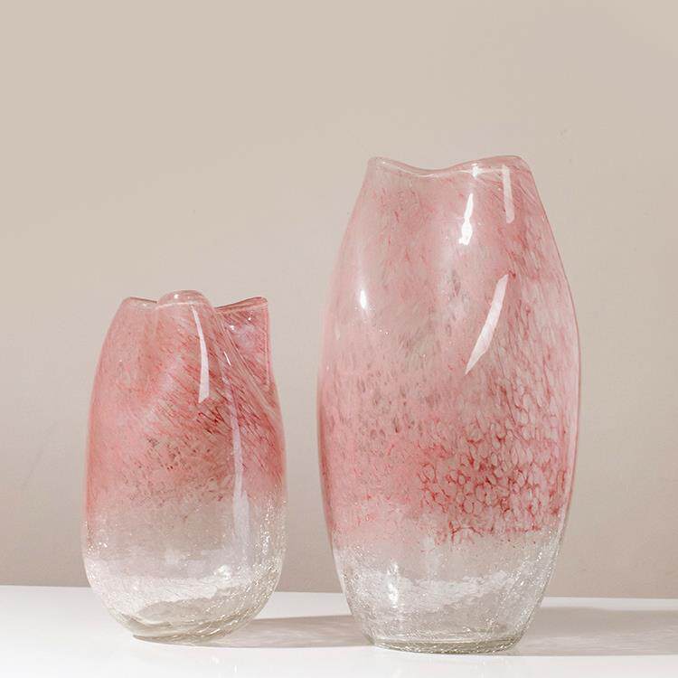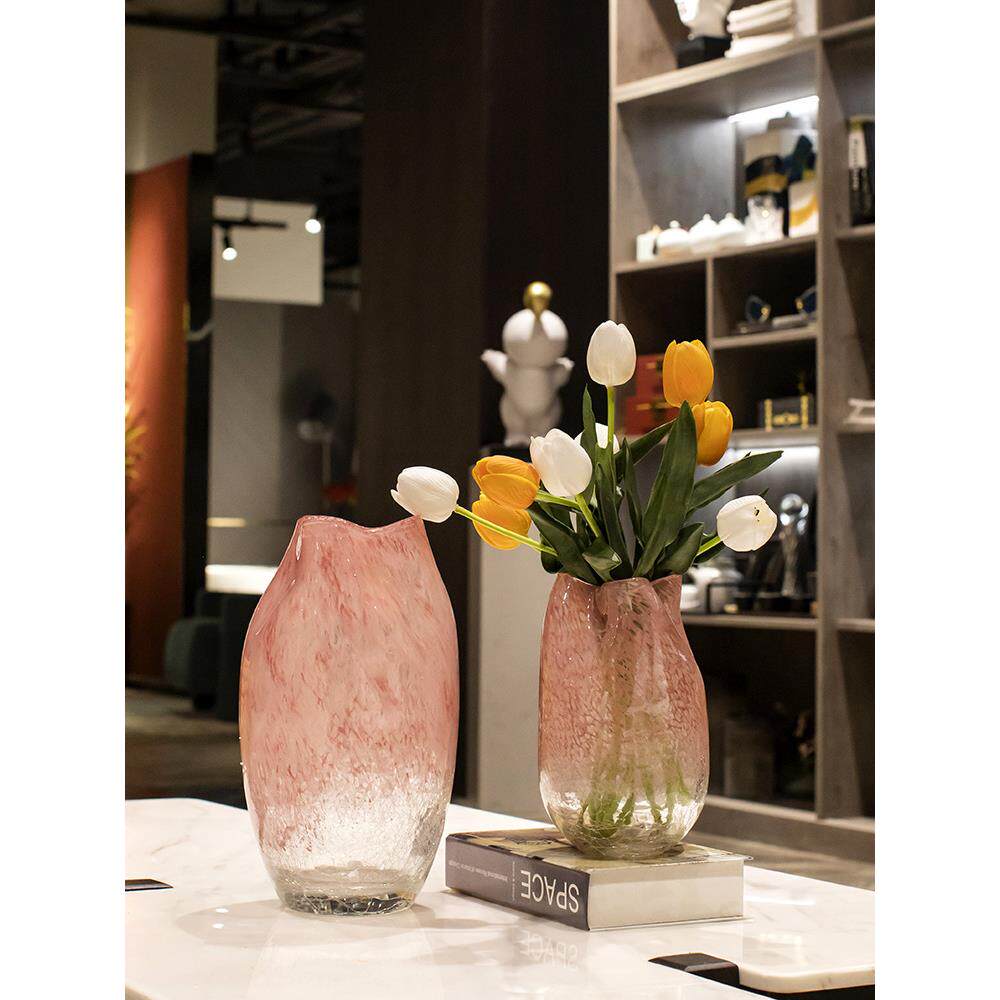 创意粉色不规则玻璃花瓶现代轻奢客厅插花水培粉色波点软装花器