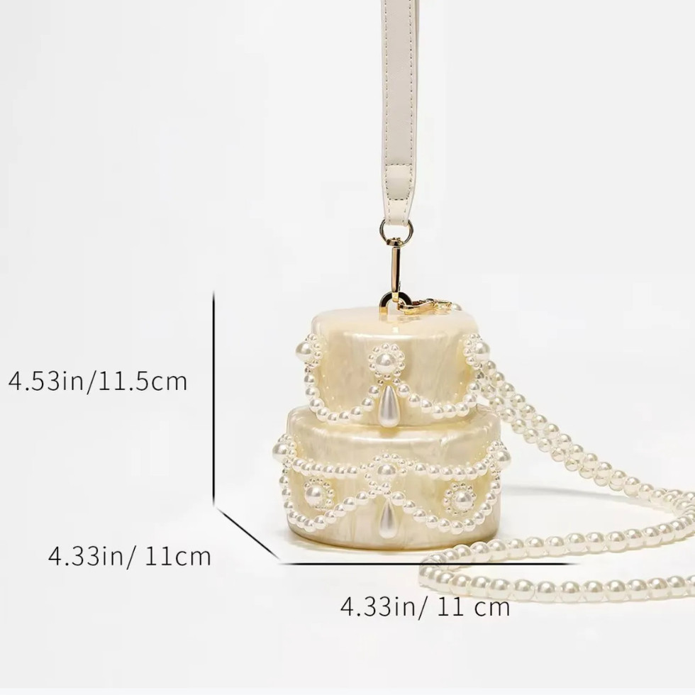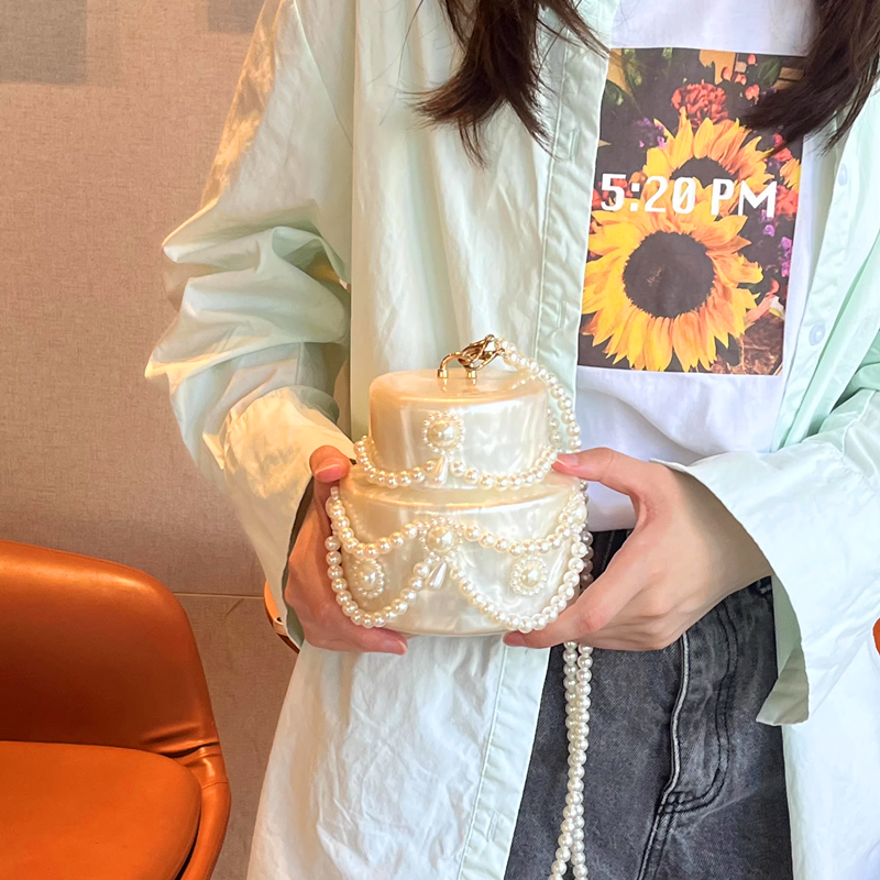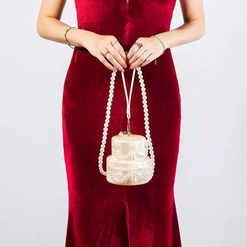 亚克力蛋糕包可爱珍珠晚装手拿包串珠珍珠钱包婚礼派对奢华单肩包