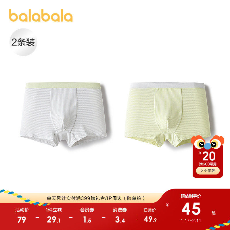 巴拉巴拉男童内裤棉平角四角短裤抗菌裆不夹PP舒适潮