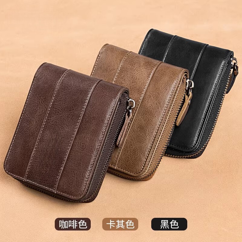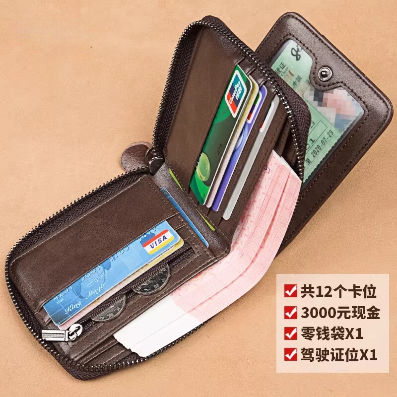 钱包男士短款真皮质感2026新款防盗刷拉链驾驶证卡包式皮夹子钱夹
