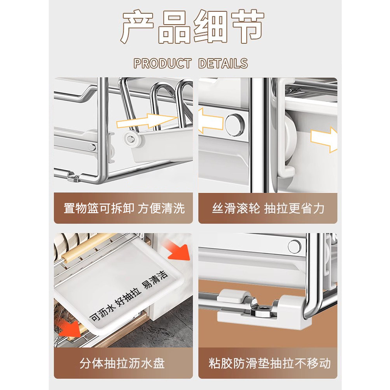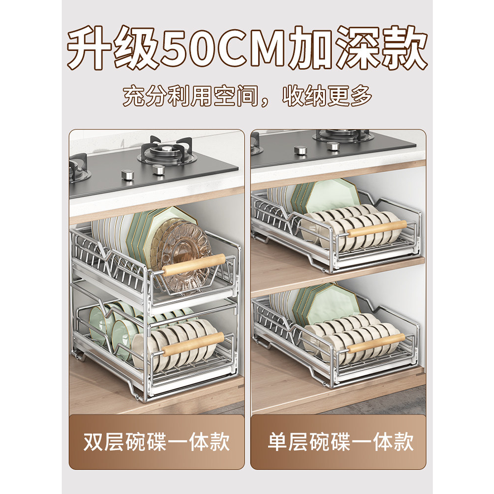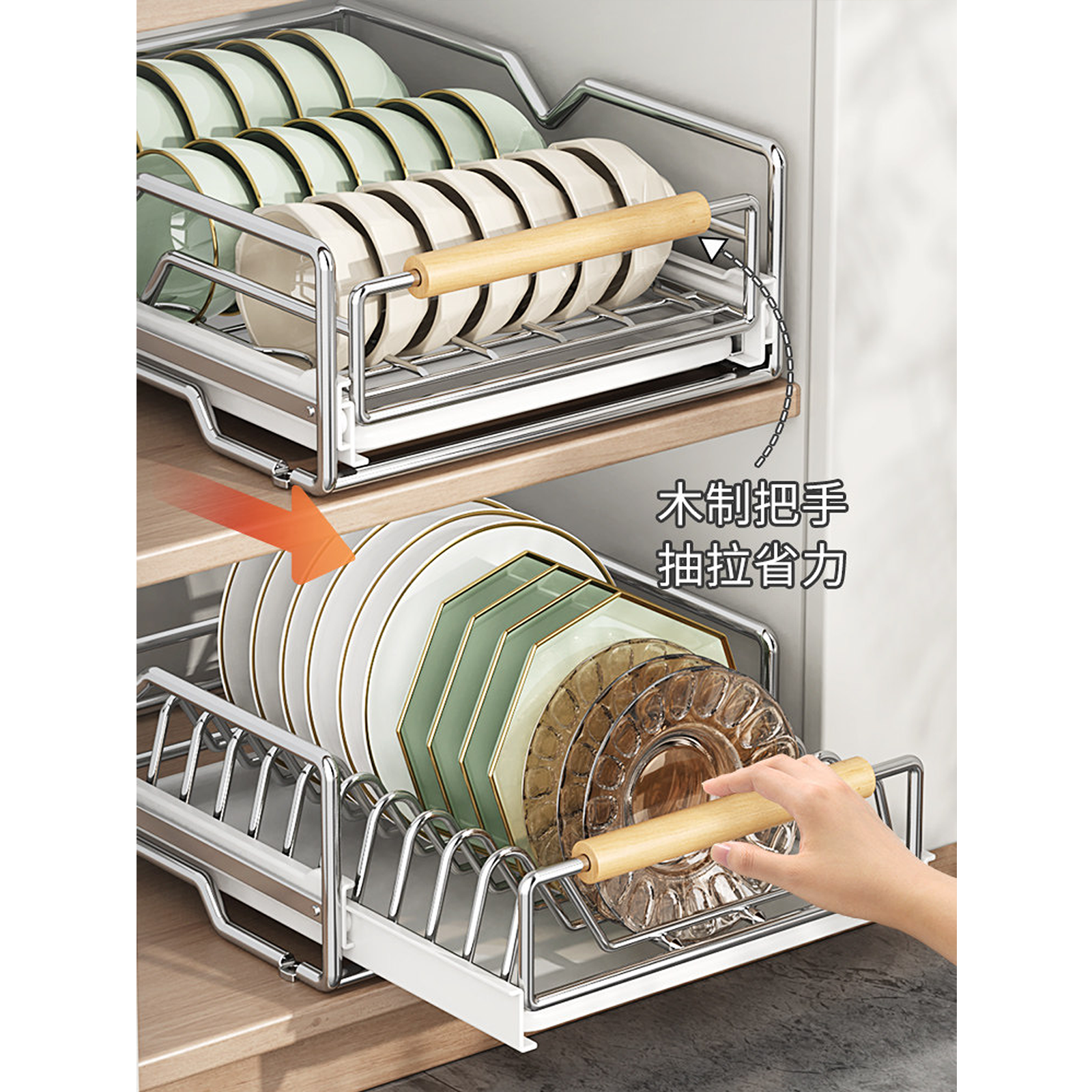 不锈钢碗碟收纳架厨房橱柜内置物架抽屉式拉篮抽拉盘沥水碗架移动