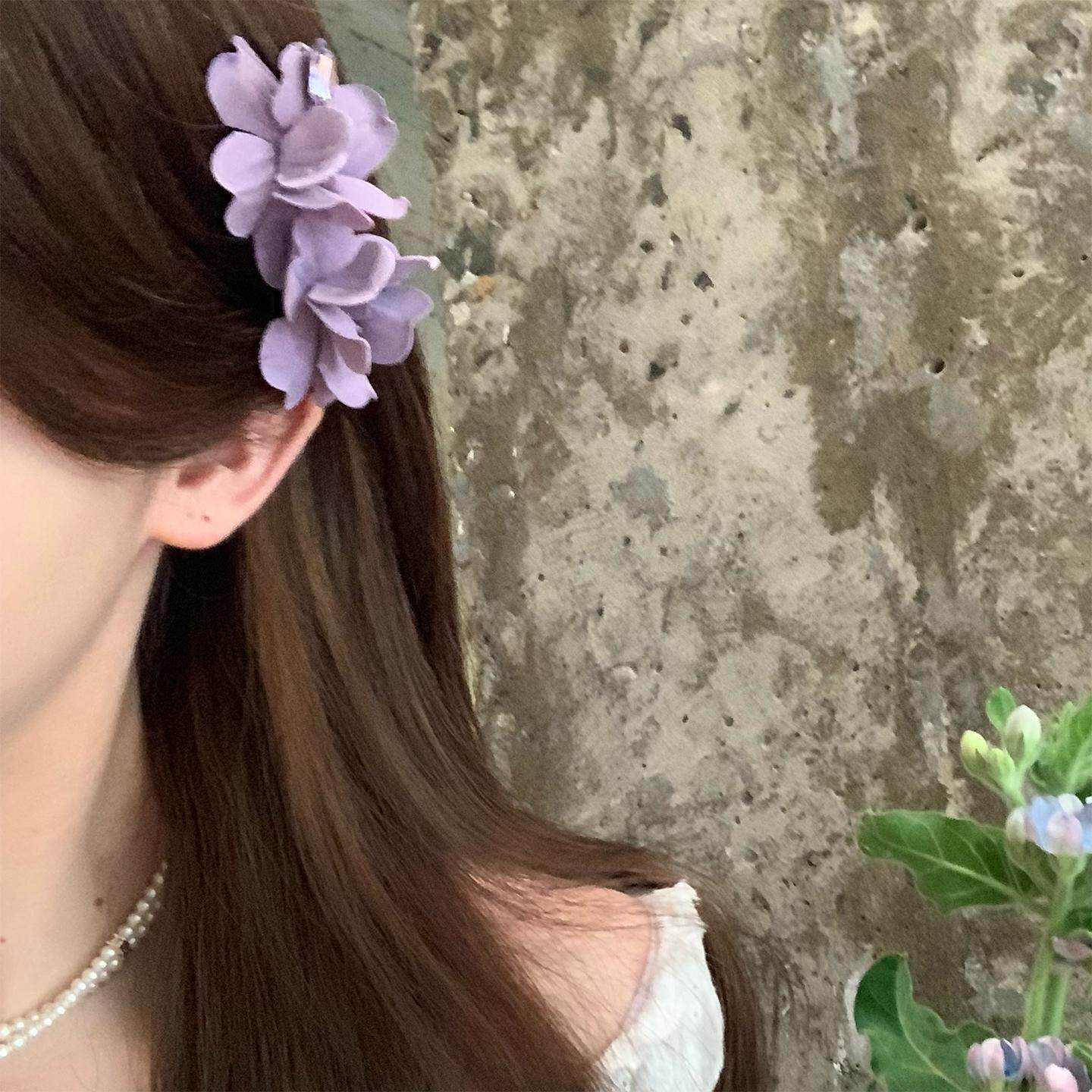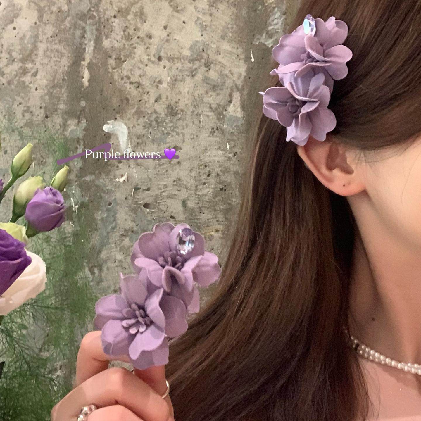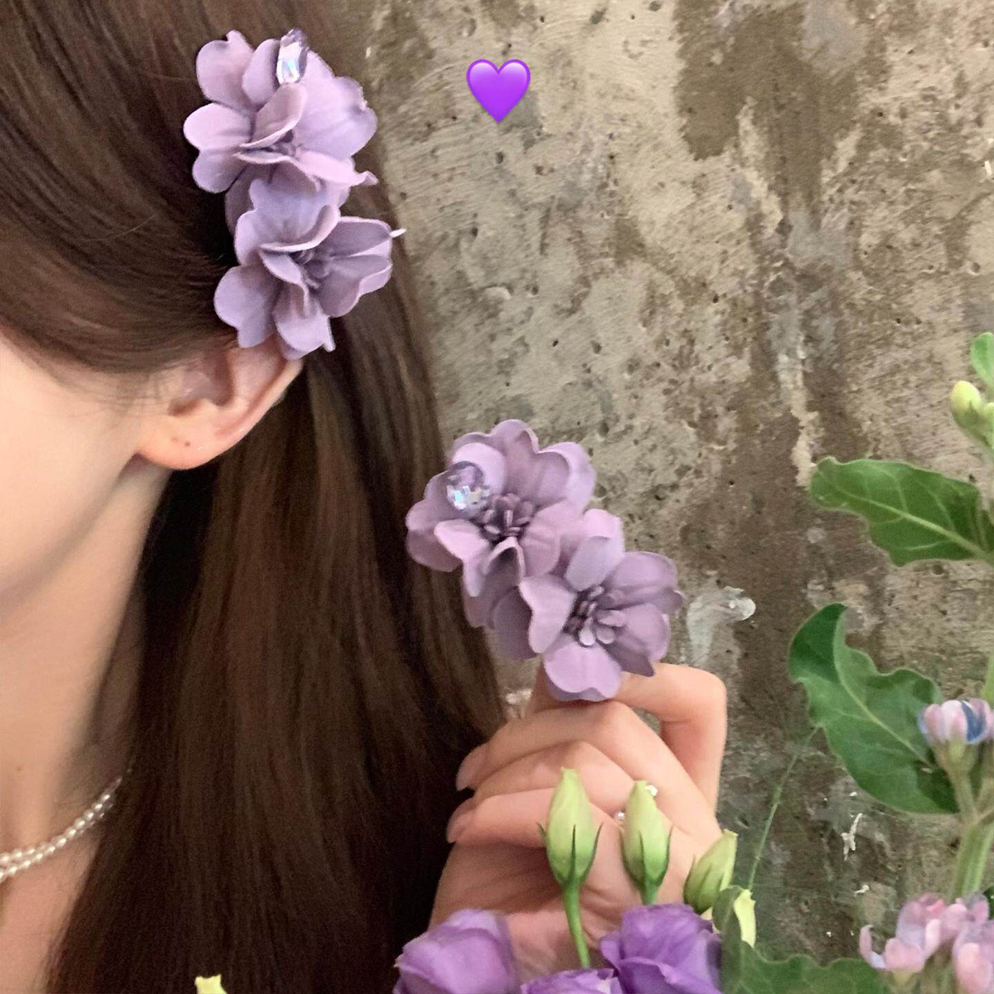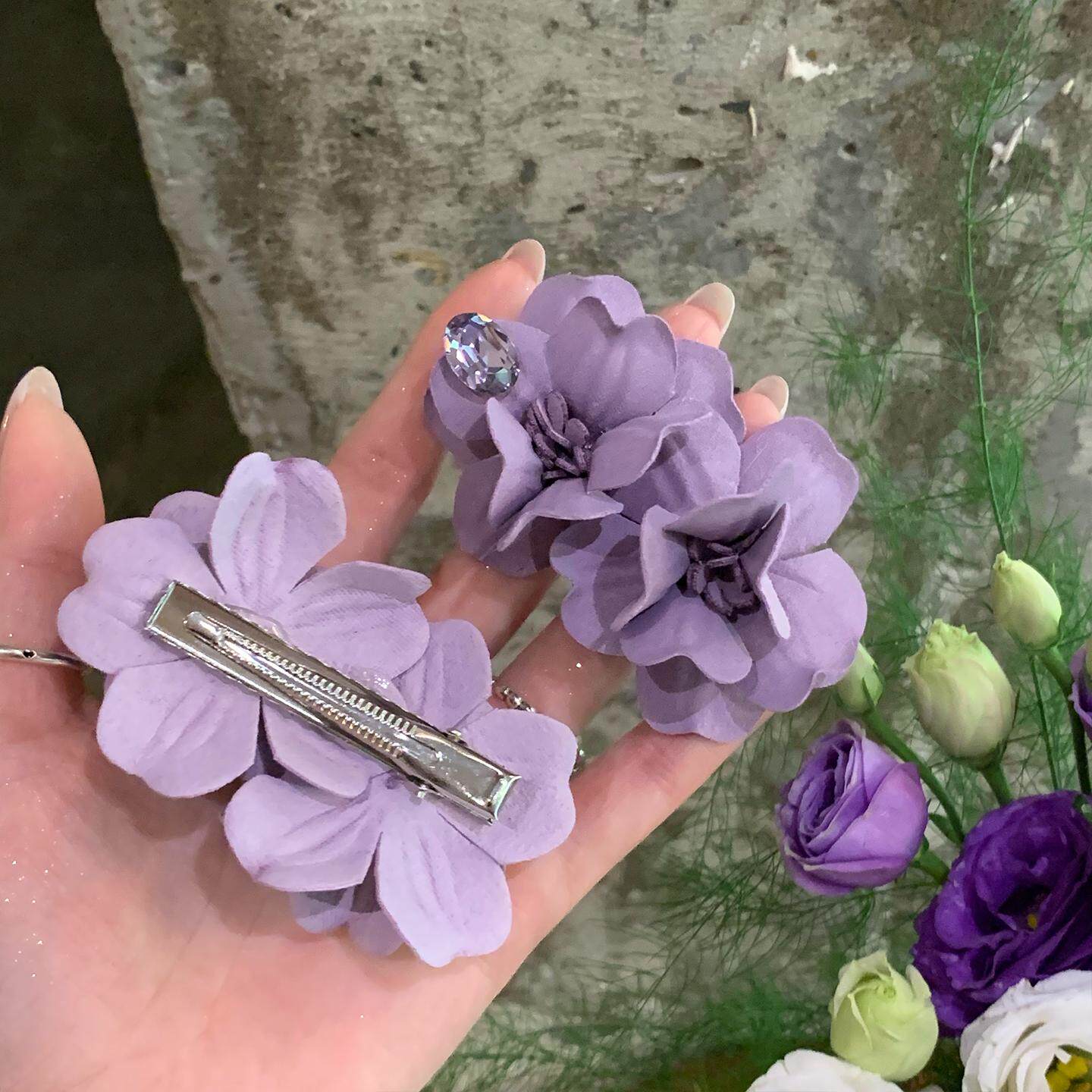 超仙气质紫色并蒂花发夹女海边度假风发饰鸭嘴夹侧边刘海夹女花朵