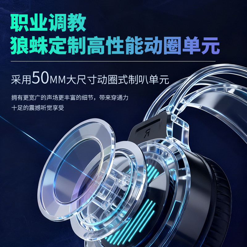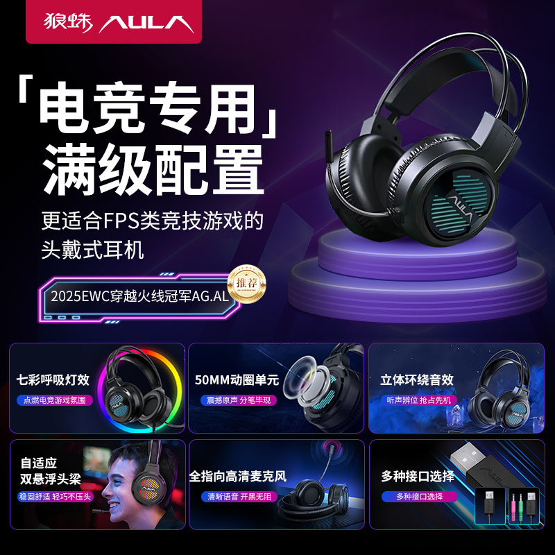狼蛛(AULA)头戴式耳机电竞游戏专用台式机电脑有线耳机炫酷灯效