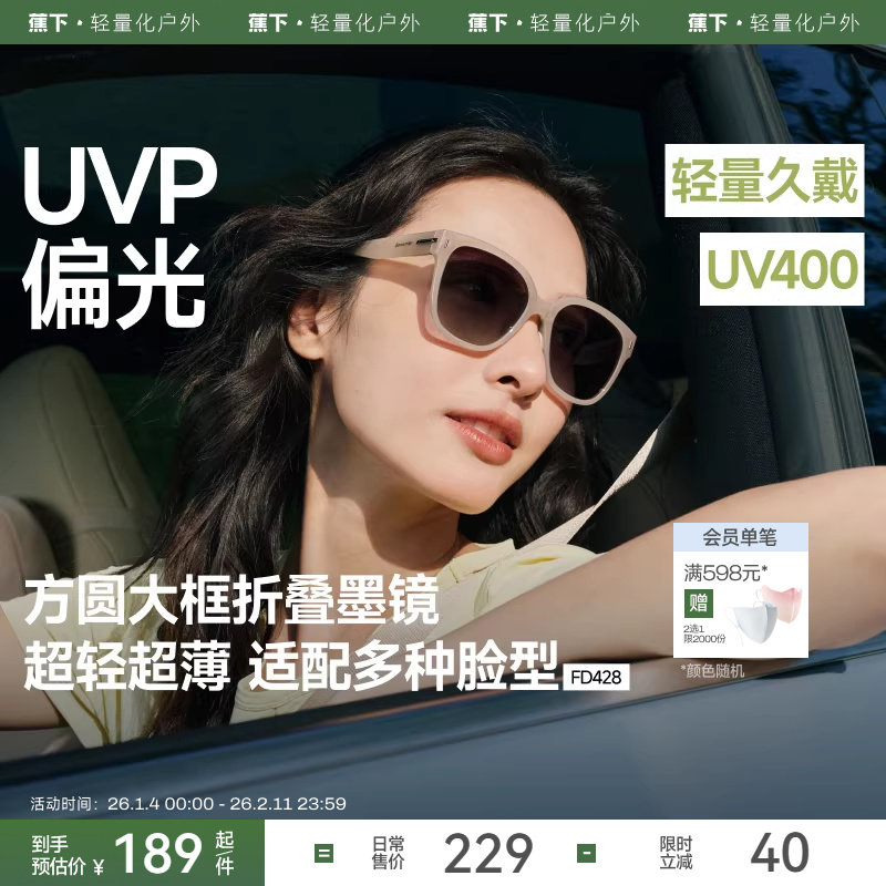 蕉下折叠墨镜女款适合方圆脸开车防紫外线强光偏光防晒太阳眼镜