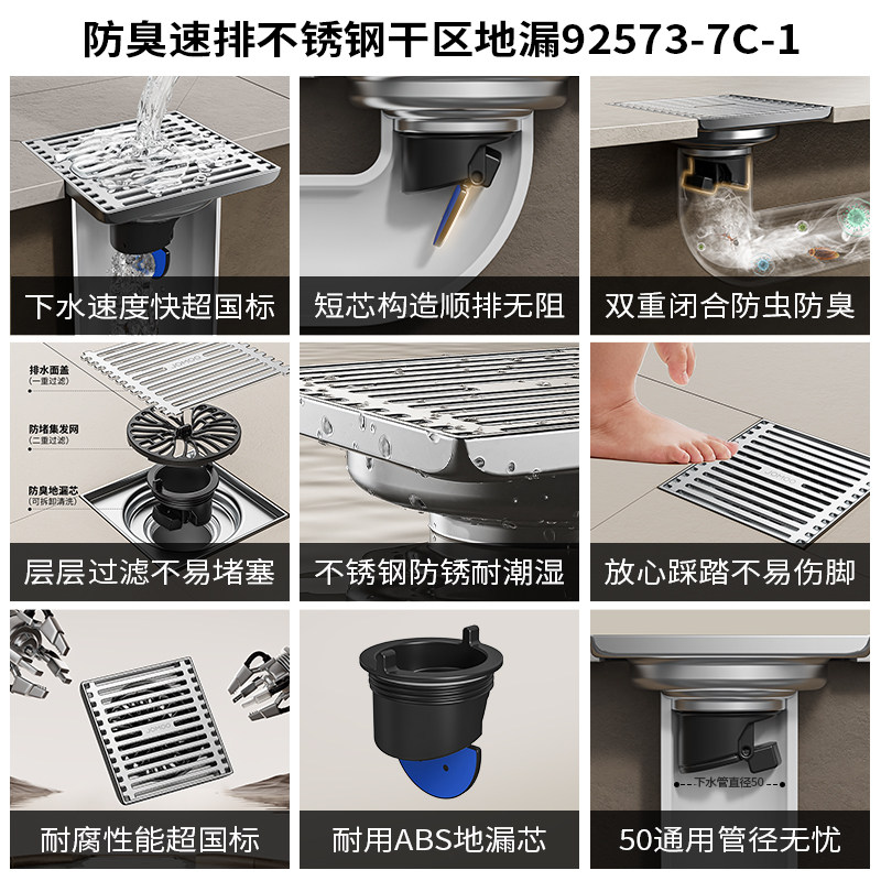 九牧卫浴旗舰店官网卫生间防臭304不锈钢地漏防虫洗衣机地漏