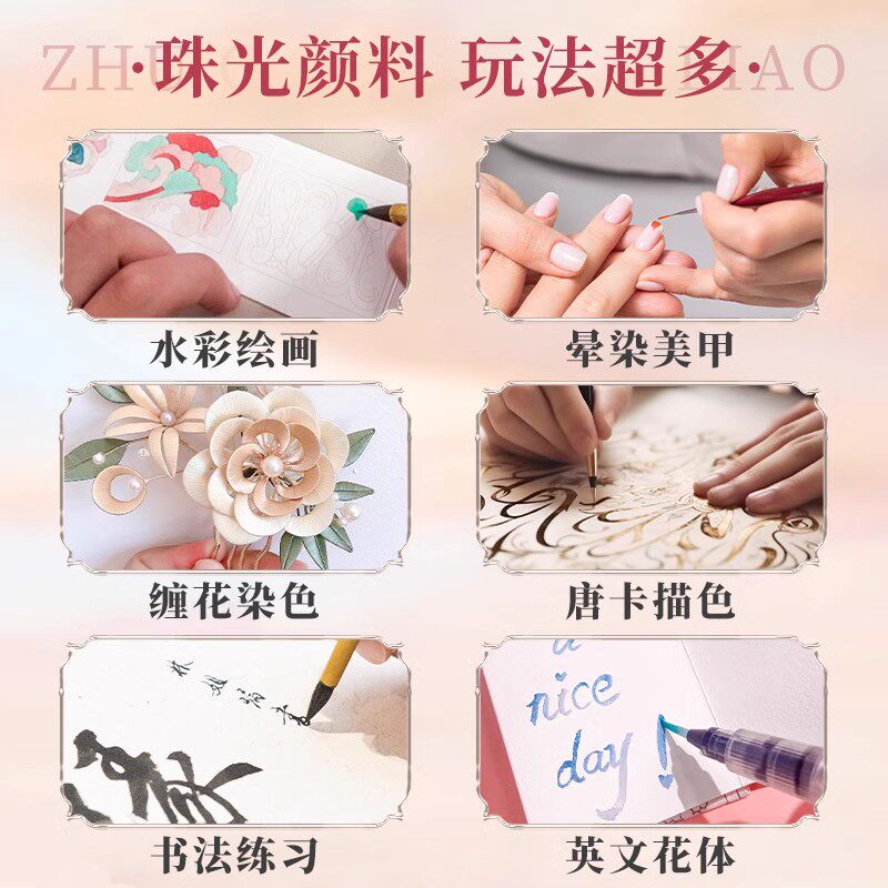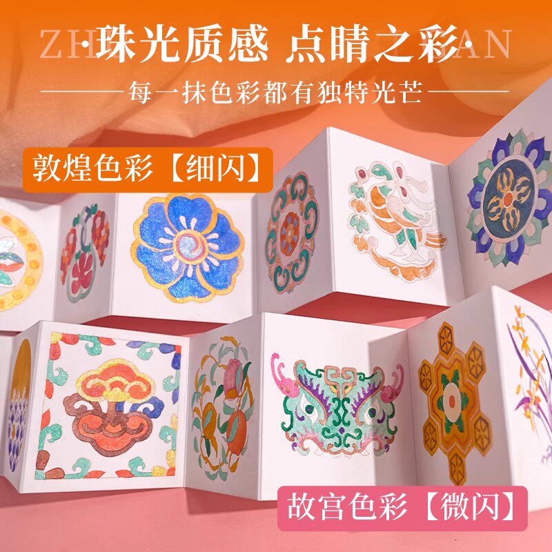 飞乐鸟24色珠光水彩颜料盒敦煌故宫国风迷你绘画便携写生固体分装