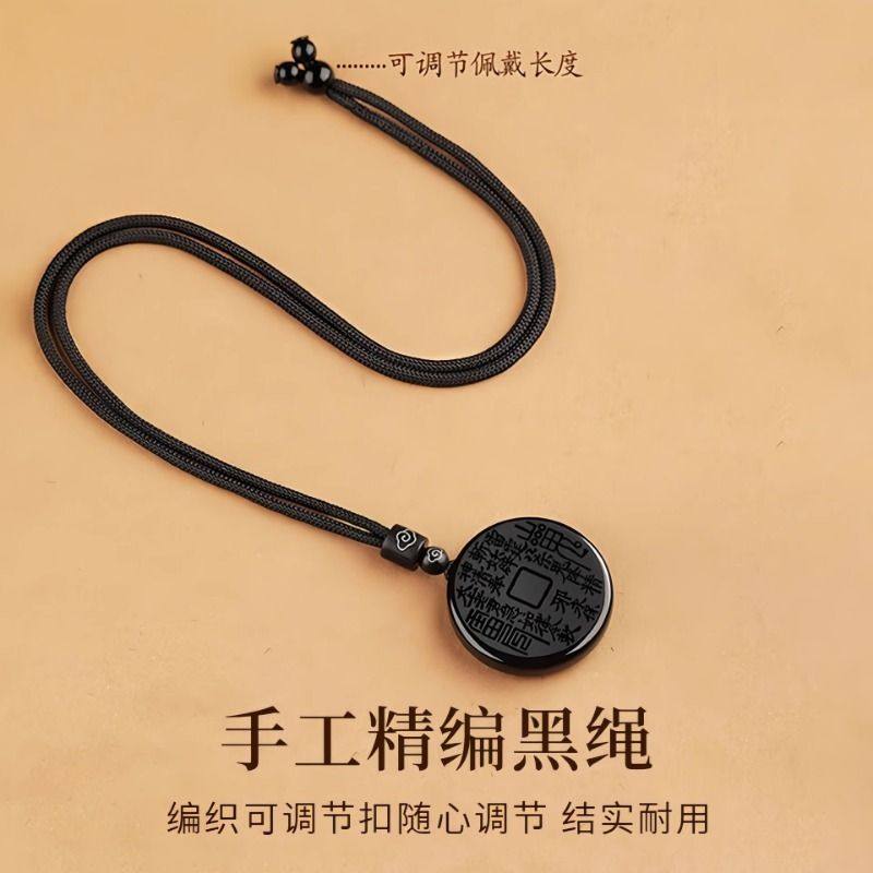普陀山黑曜石无事牌吊坠女天然护身符项链平安符送男朋友的礼物