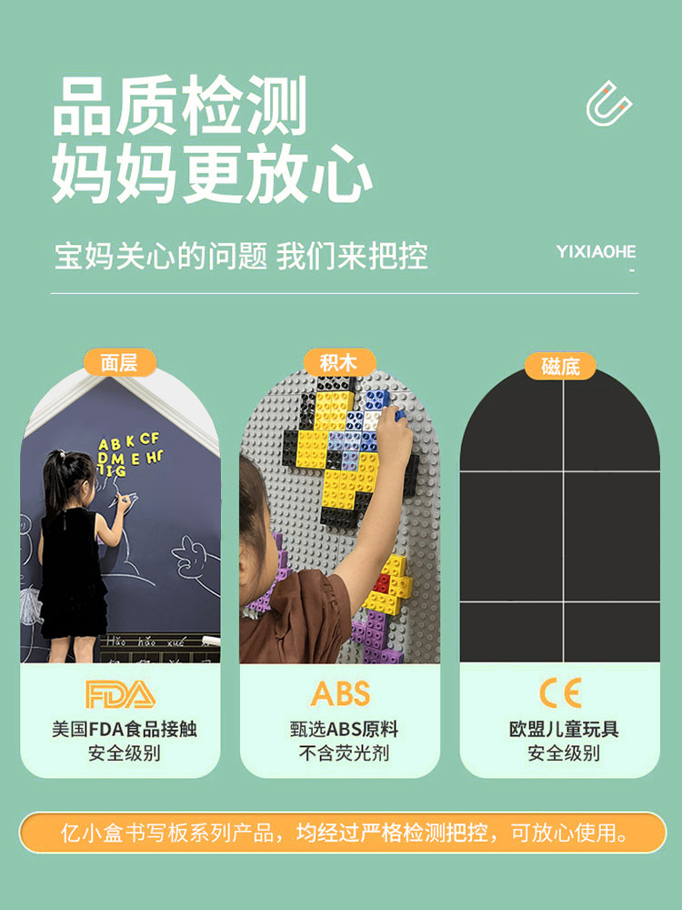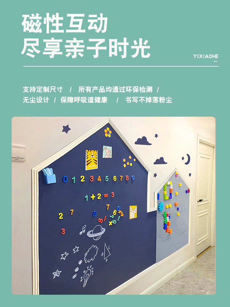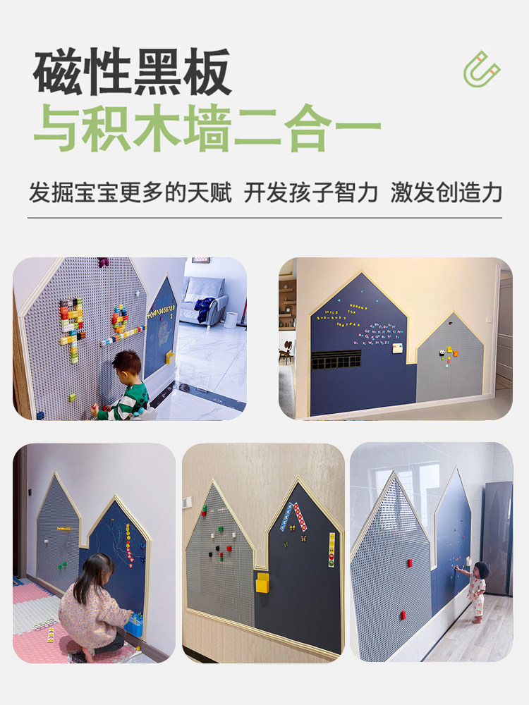 亿小盒防撞条边框涂鸦黑板积木墙二合一儿童孩子宝宝双层磁性黑板墙贴学校幼儿园家用可擦写白板黑板墙装饰墙