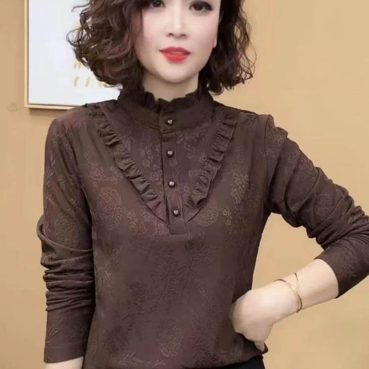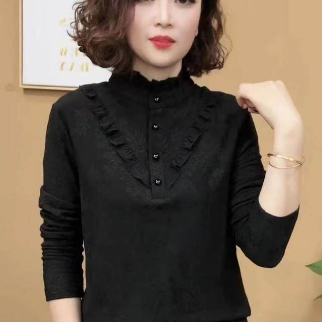 2025秋冬新款一体绒保暖打底衫女中年妈妈气质长袖木耳边百搭上衣