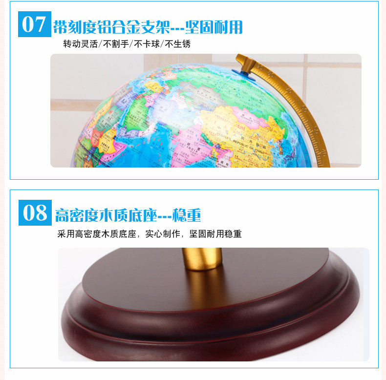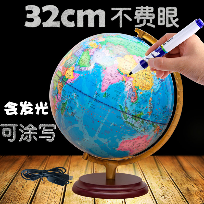 志诚 高清32cm大号地球仪实心木底座初中学生用高中生AR智能教学版世界3d立体悬浮摆件25cm发光台灯儿童夜灯