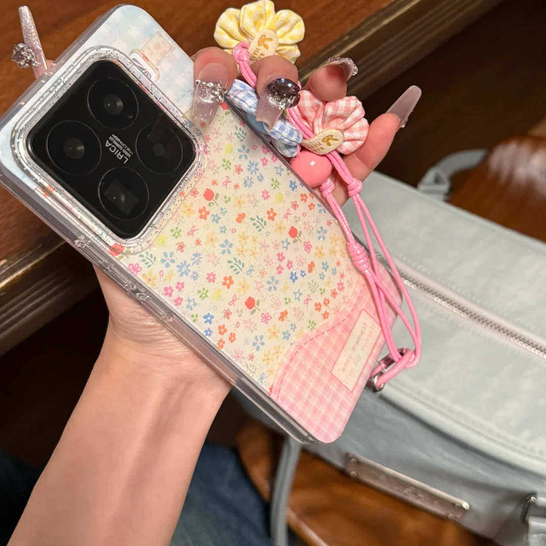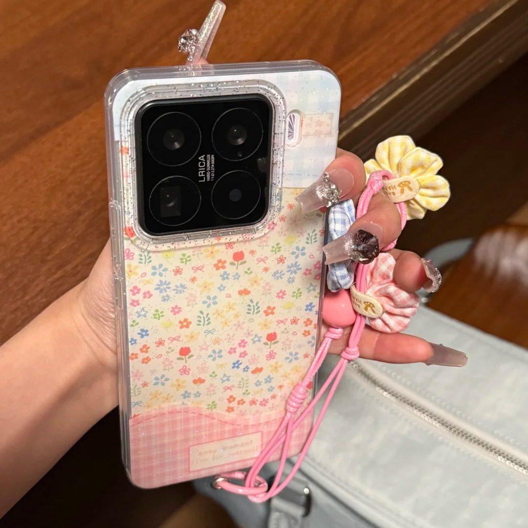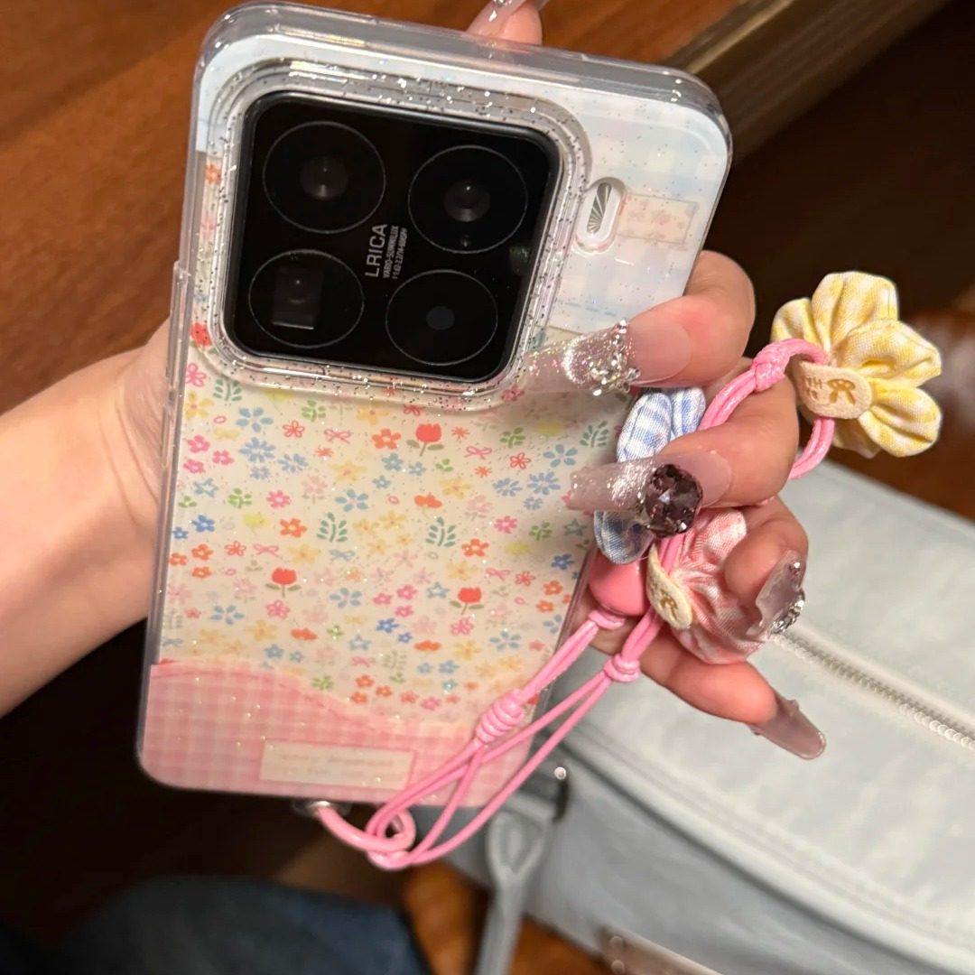 满屏碎花粉格纹手拎花朵手机壳适用于小米15手机壳小众双层15pro新款保护套14pro全包防摔小米14