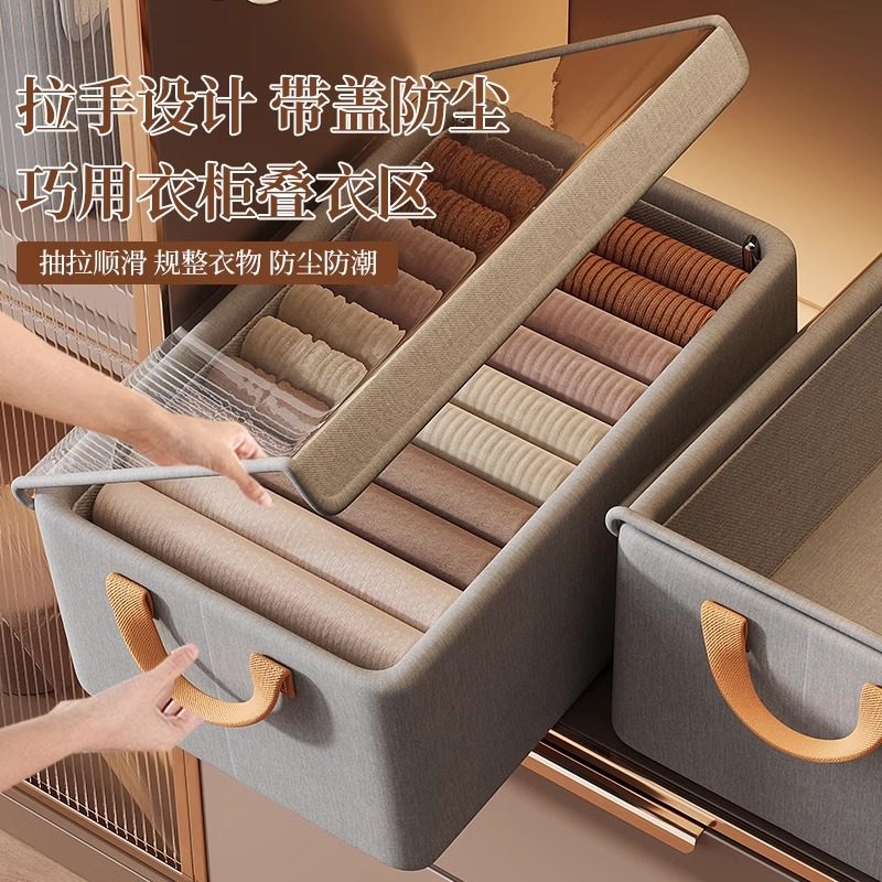 衣柜衣服收纳筐家用放衣物裤子分层整理箱布艺带盖折叠储物神器盒