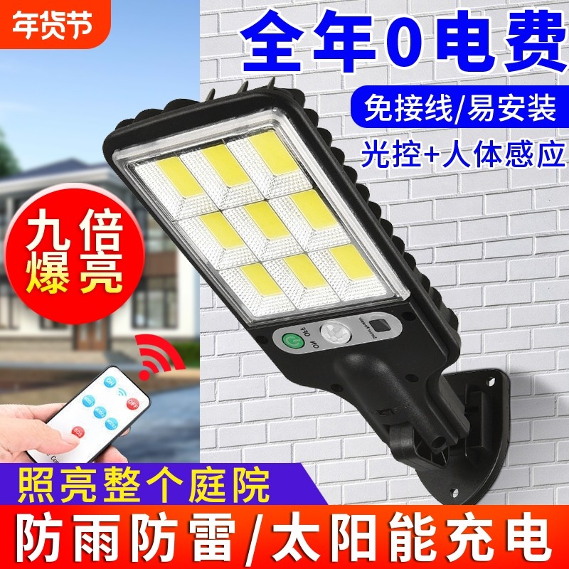 太阳能灯家用庭院灯壁灯户外防水人体感应一体化led照明路灯充电