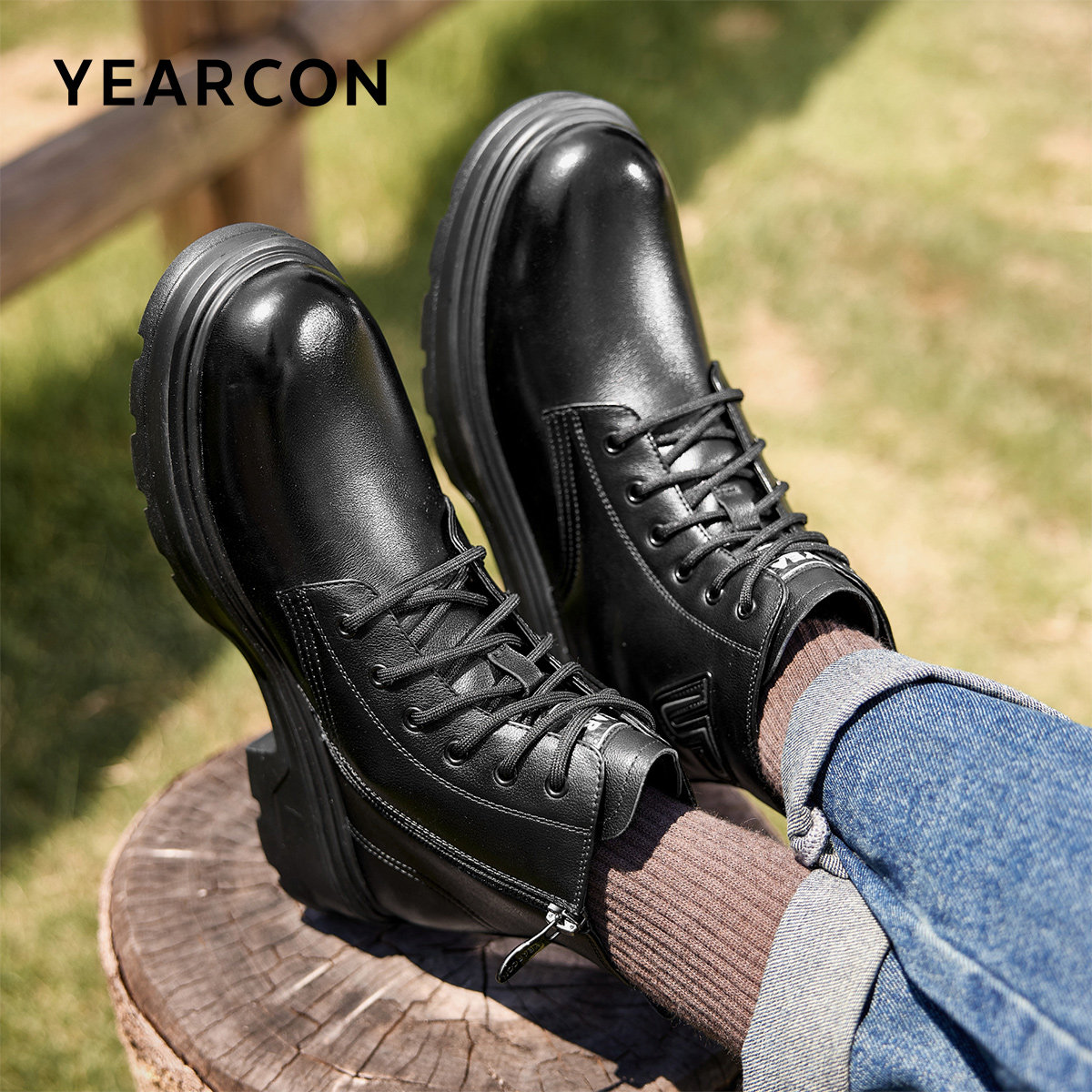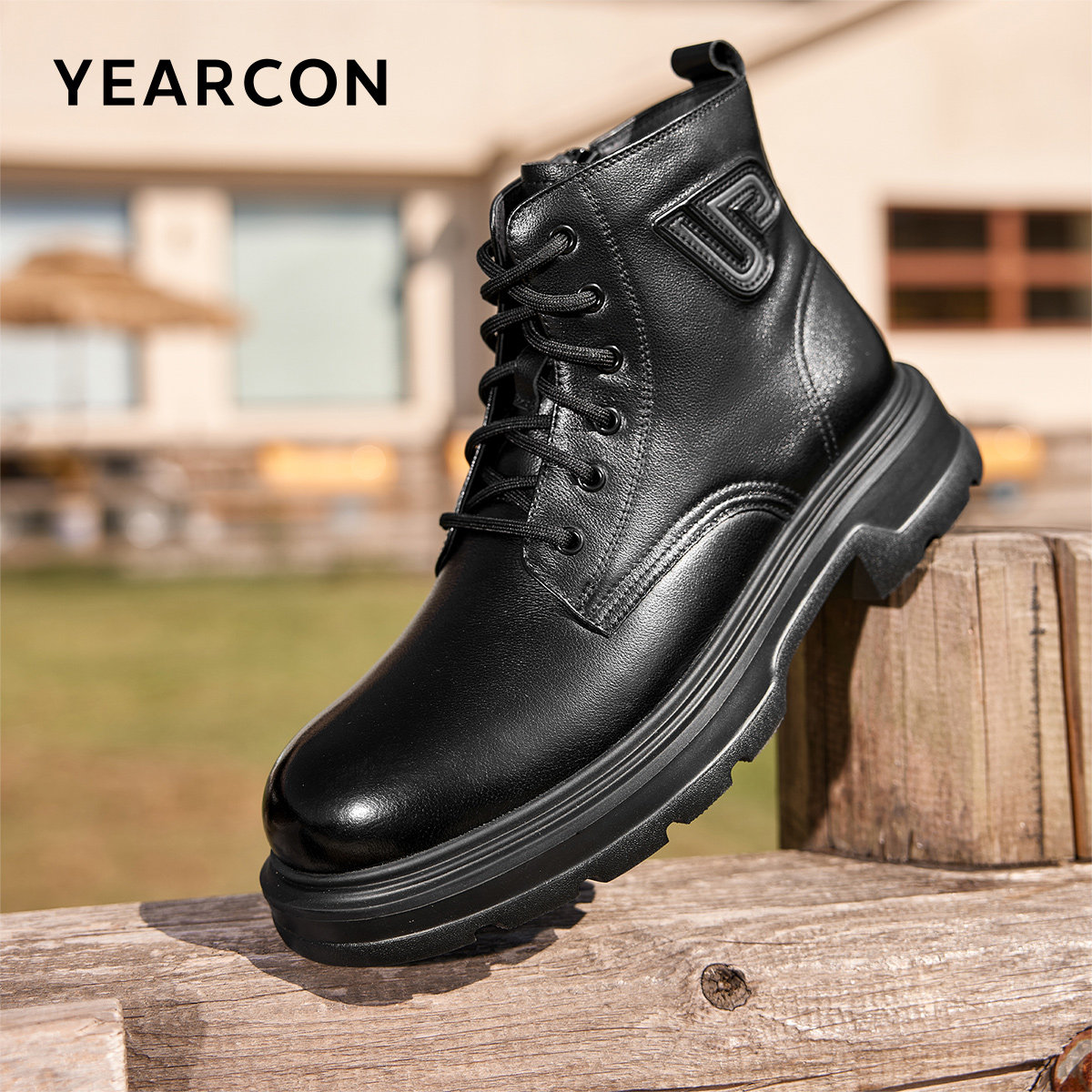 意尔康男鞋2025冬季真皮马丁靴休闲男款高帮皮鞋加绒男士中帮靴子