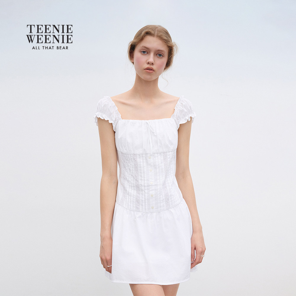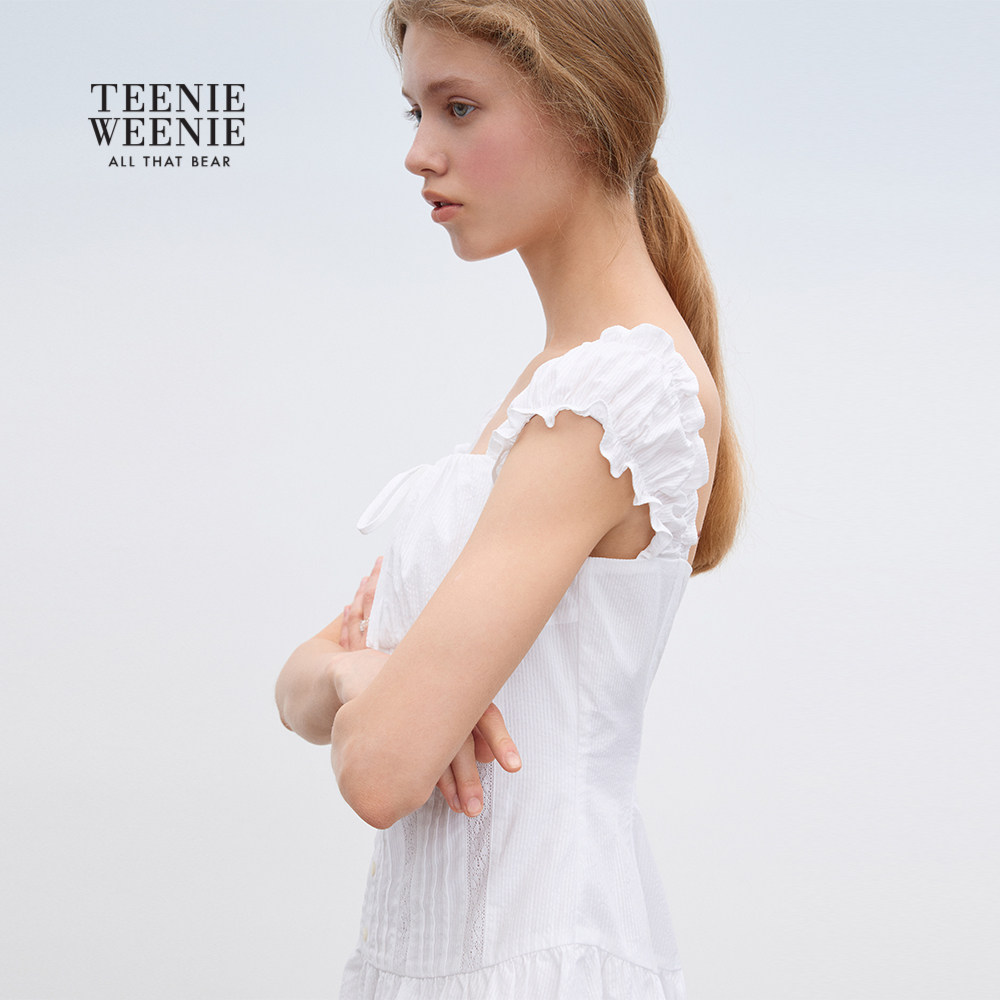 TEENIEWEENIE bearnova2025年夏季新款女装甜美俏皮木耳边连衣裙