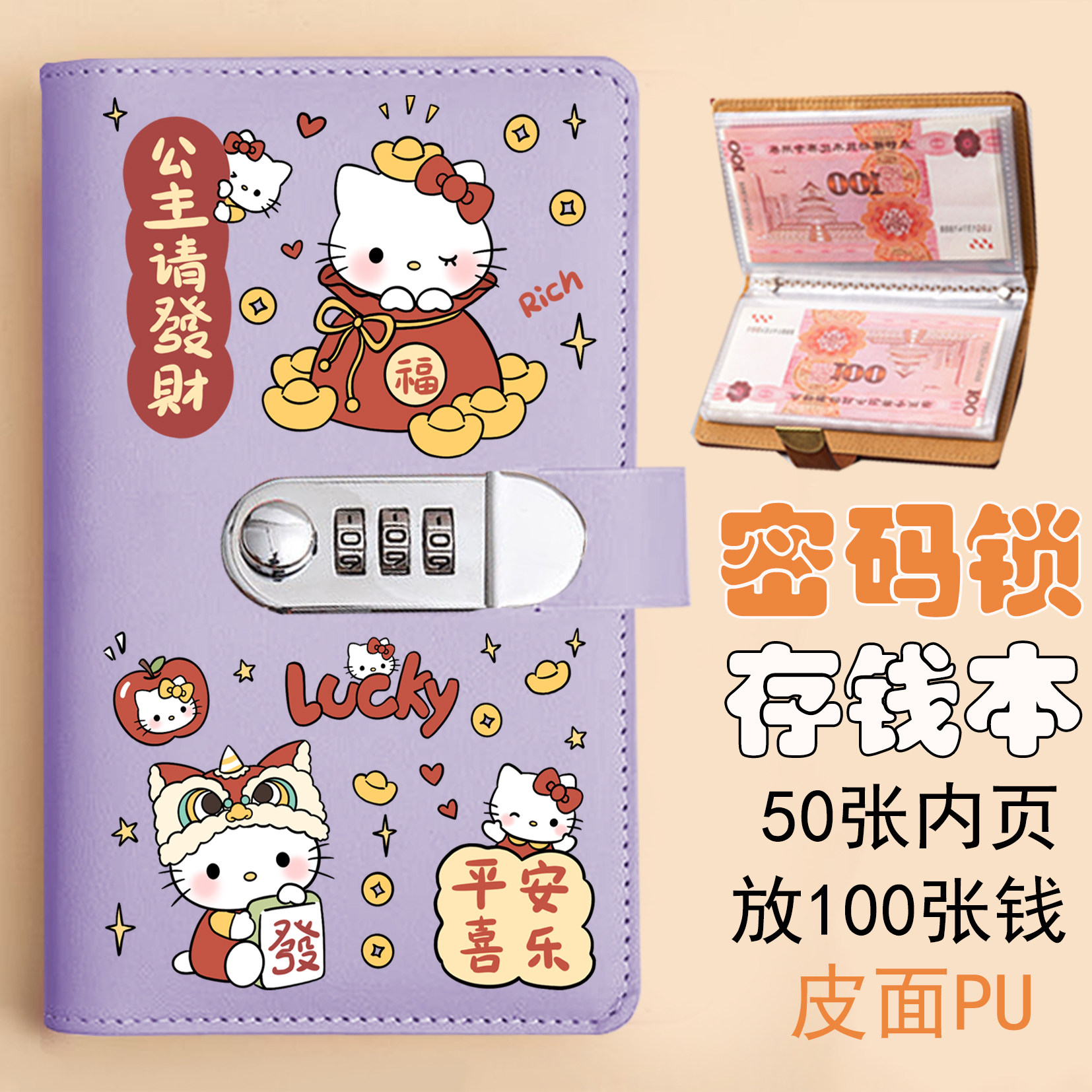 吉伊卡哇存钱本小学生可放钱现金收纳袋密码锁手账本大容量攒钱本