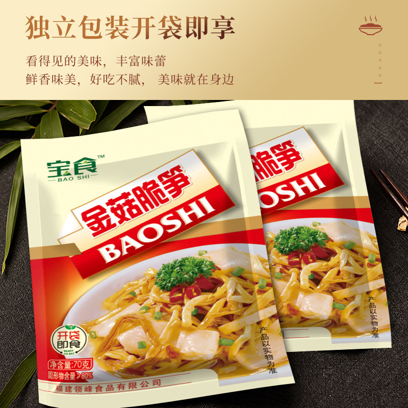 宝食金菇脆笋开袋即食金针菇笋丝下饭菜福建小菜咸菜配粥袋装开胃