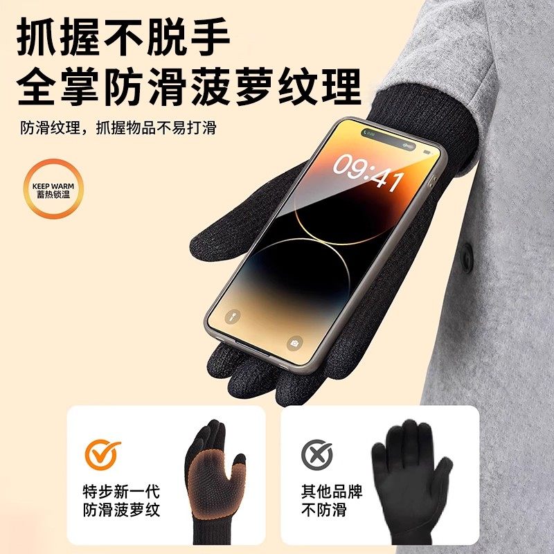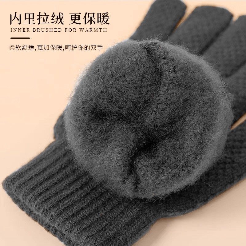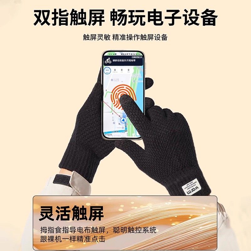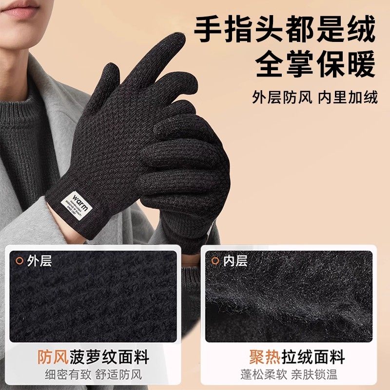 可触屏棉手套男士冬季保暖加绒加厚毛线针织骑行男女同款防寒手套