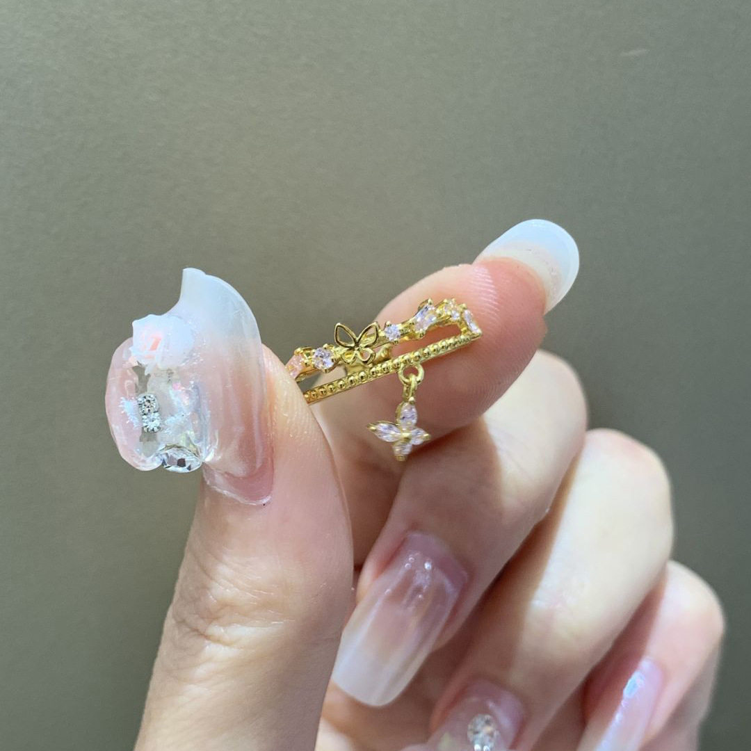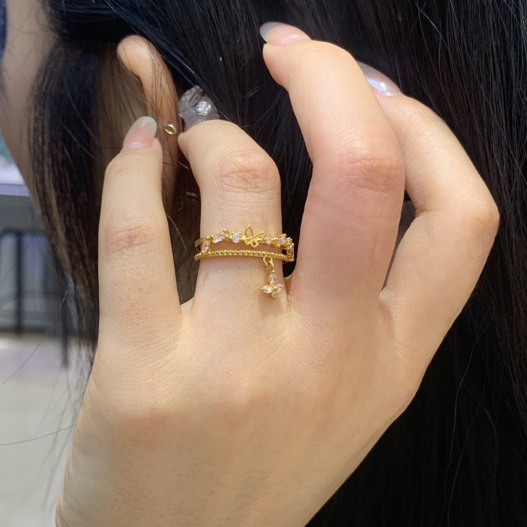 小众轻奢个性双层蝴蝶戒指女时尚少女甜美吊坠金色指环高级感手饰
