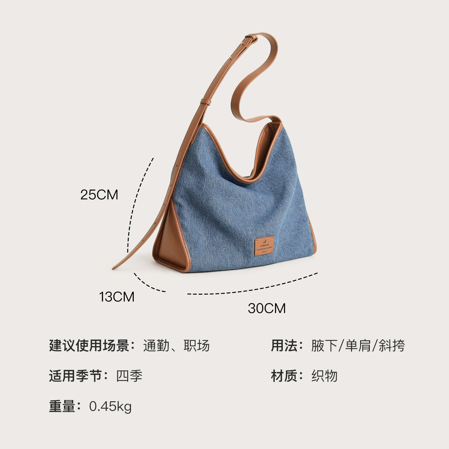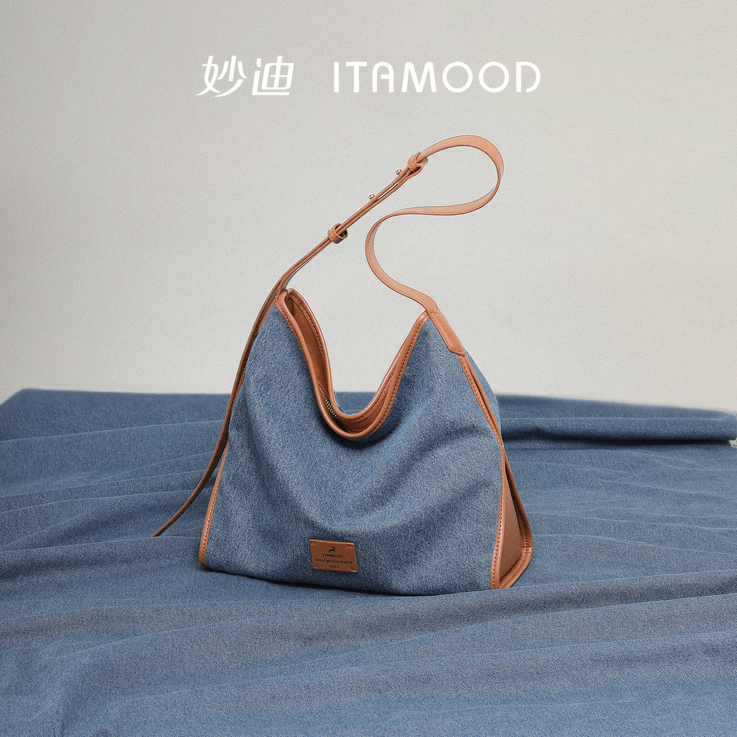 妙迪丹宁牛仔大容量托特包休闲松弛感hobo腋下包通勤斜挎大包包女