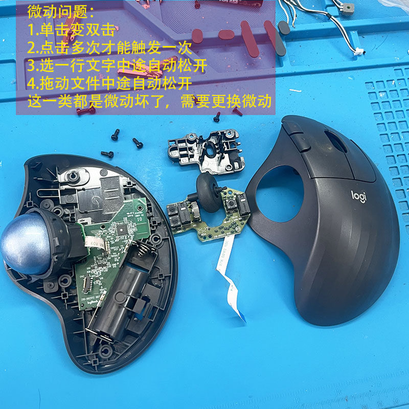 广东快修罗技鼠标轨迹球系列MX ERGO/M757人体工学鼠标维修换微动