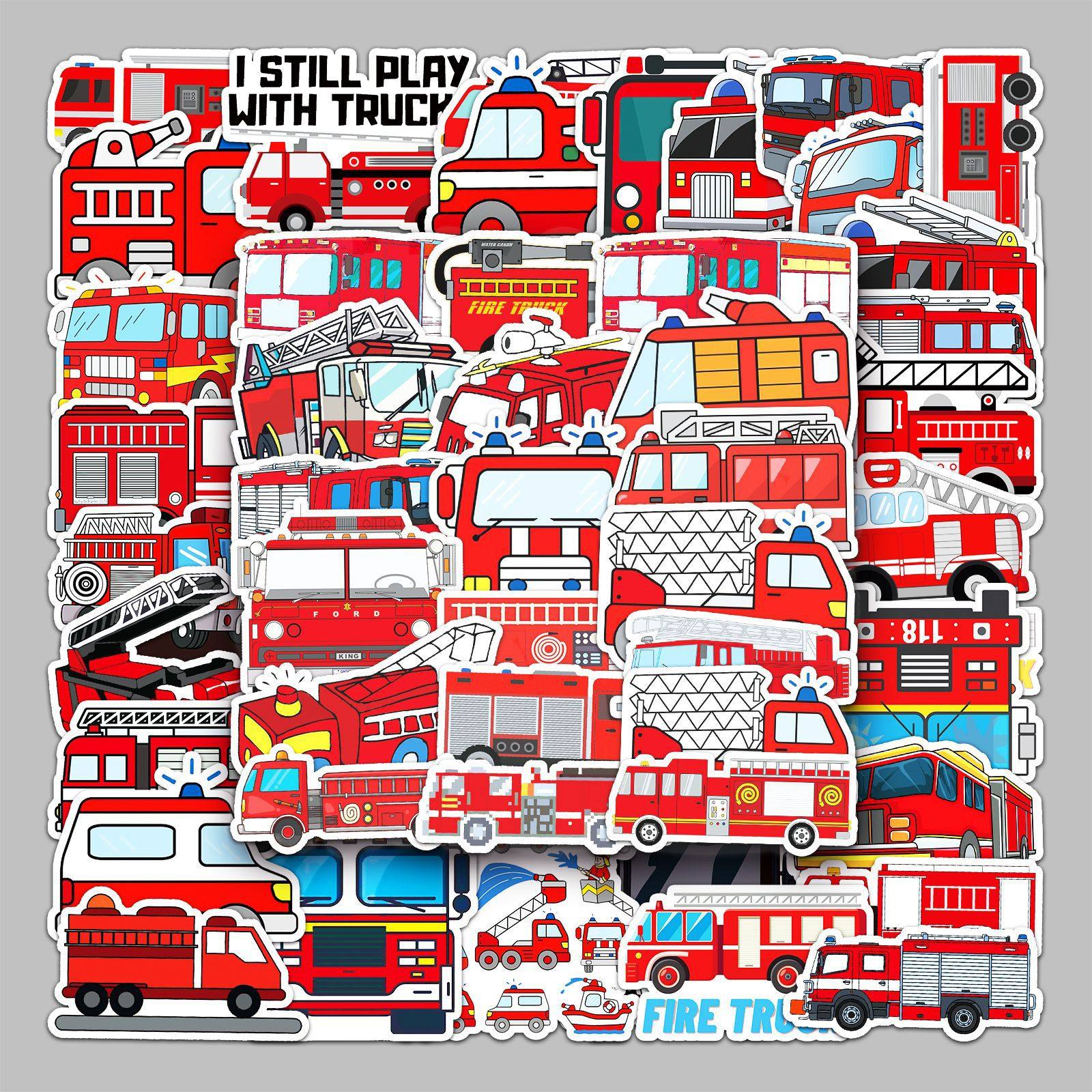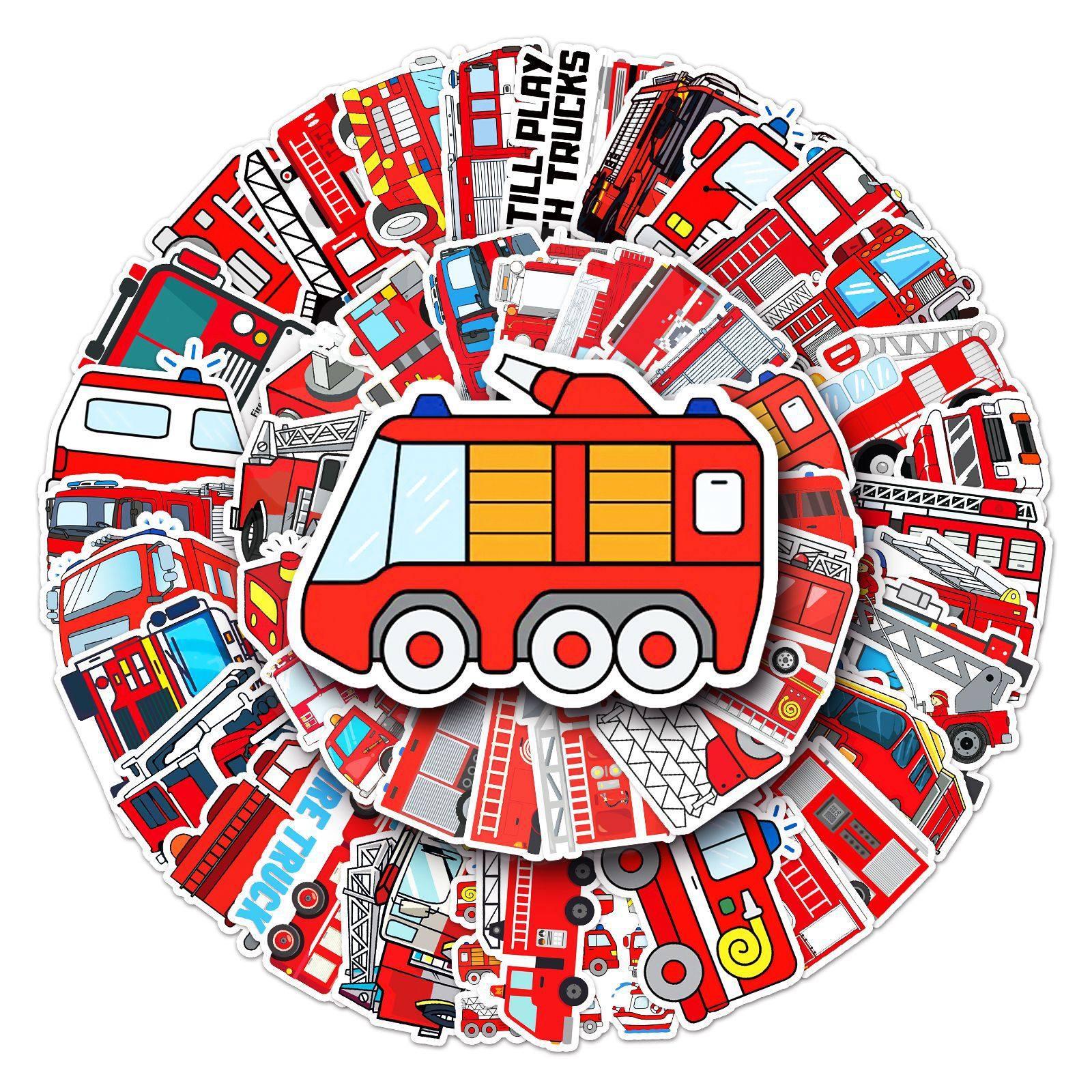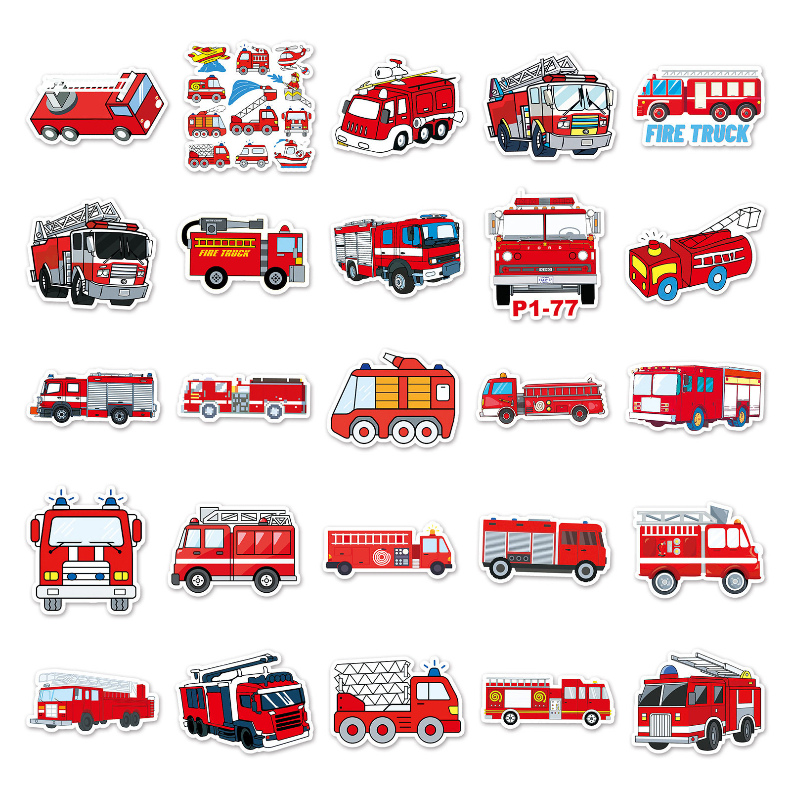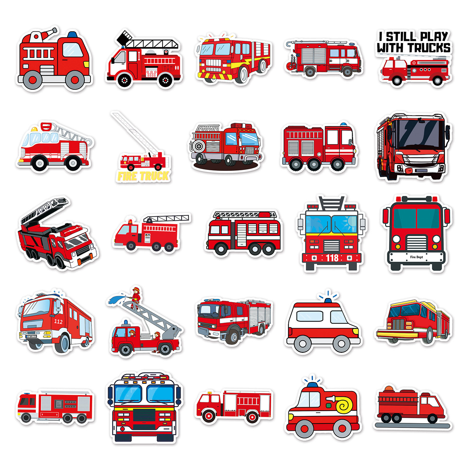 50张消防车创意行李箱贴纸 防水涂鸦贴纸滑板车电脑平板卡通装饰