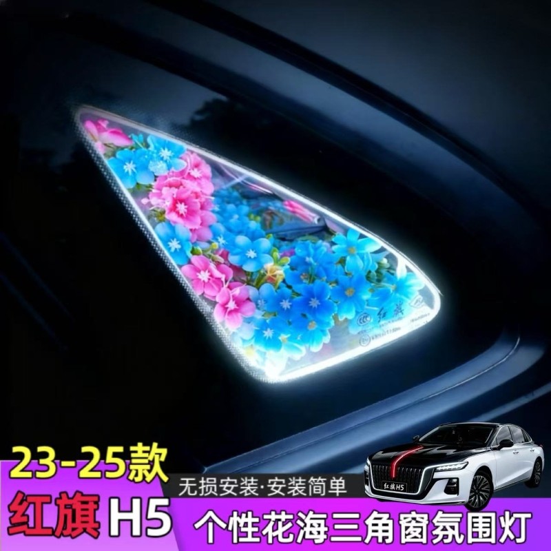 全新红旗汽车h5花海三角窗改装发光车载氛围灯装饰小窗改造