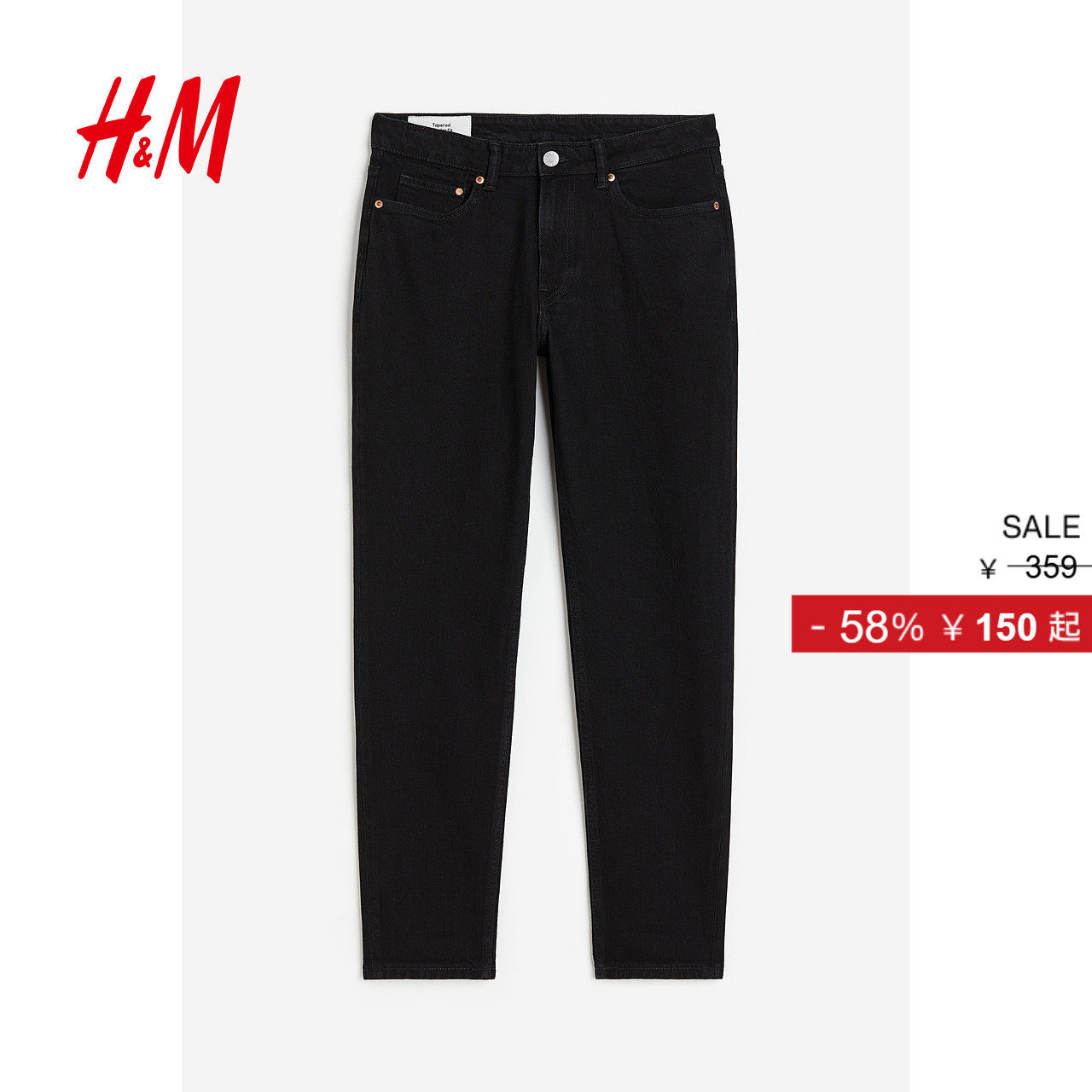 HM男装牛仔裤冬季时尚休闲合身中腰锥形小脚通勤休闲长裤0931747