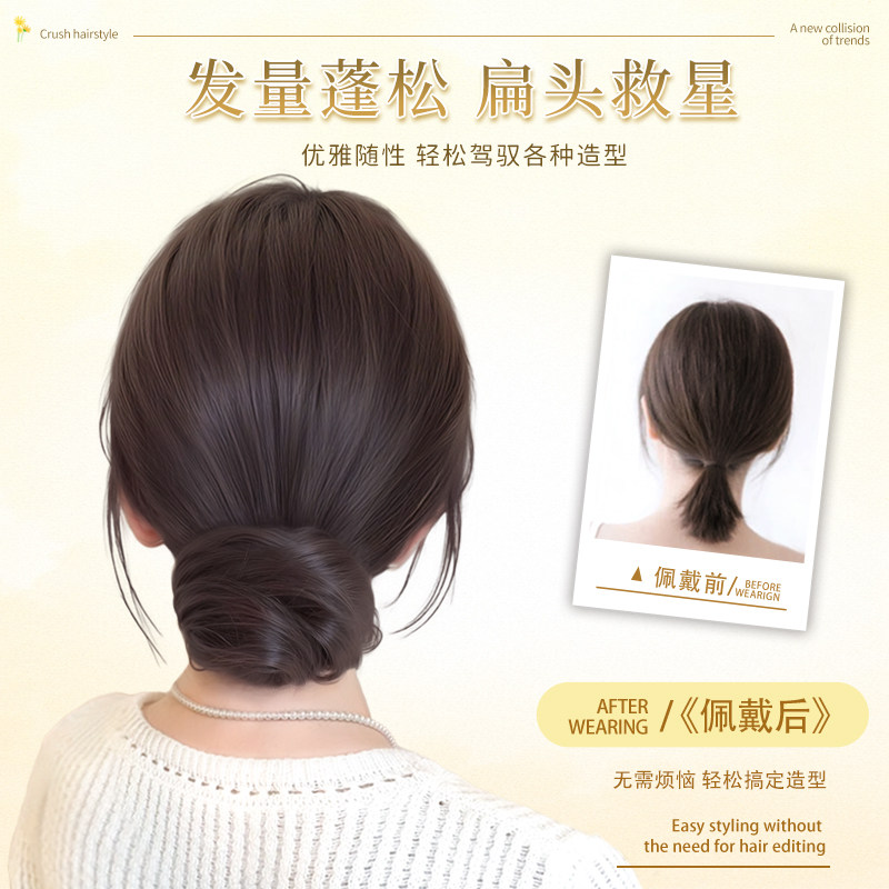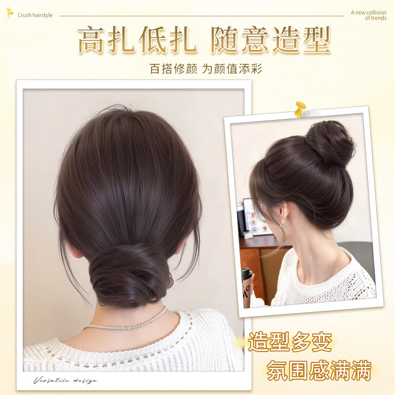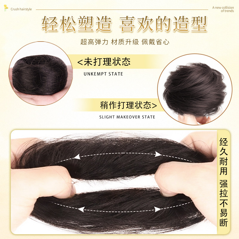 低扎丸子头假发鸡毛头抓夹盘发发包慵懒感造型头饰自然蓬松后脑勺