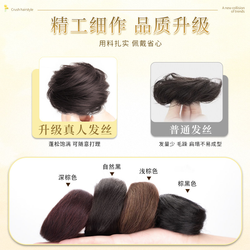 低丸子头假发发圈女全真发低扎花苞盘发后脑勺发包丸子发量少蓬松