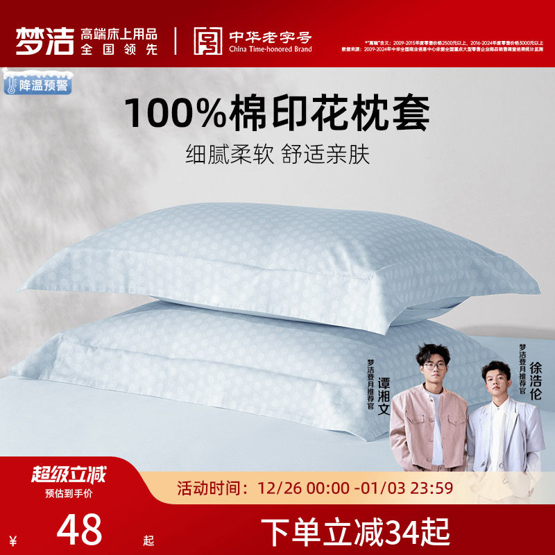 梦洁家纺枕套2025新款纯棉全棉夏季学生宿舍枕头套单双一对装散件