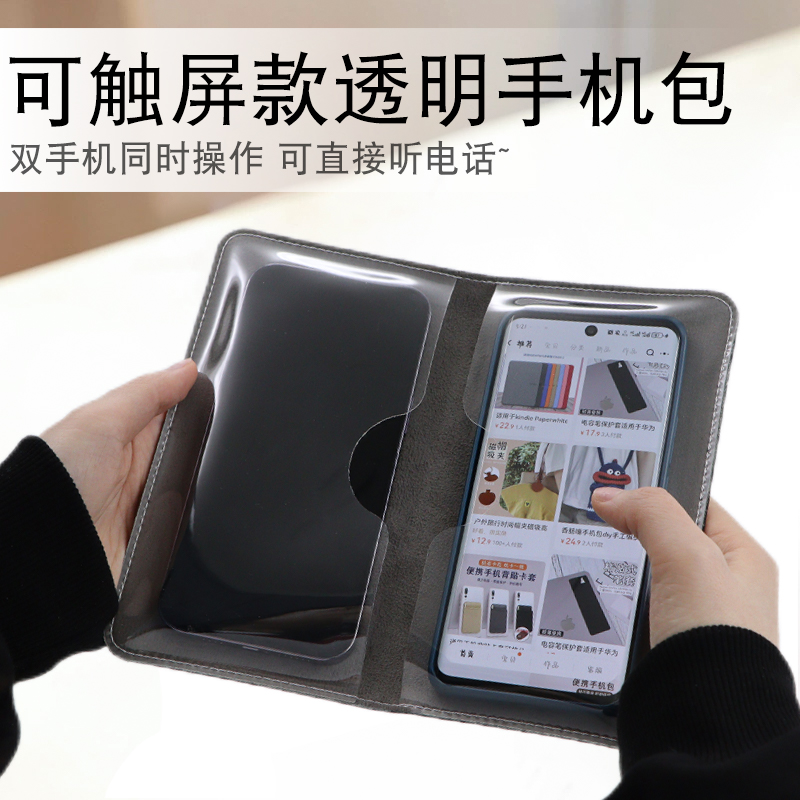 透明手机套装两部手机可触摸双手机套二合一防尘收纳钱包式手机包
