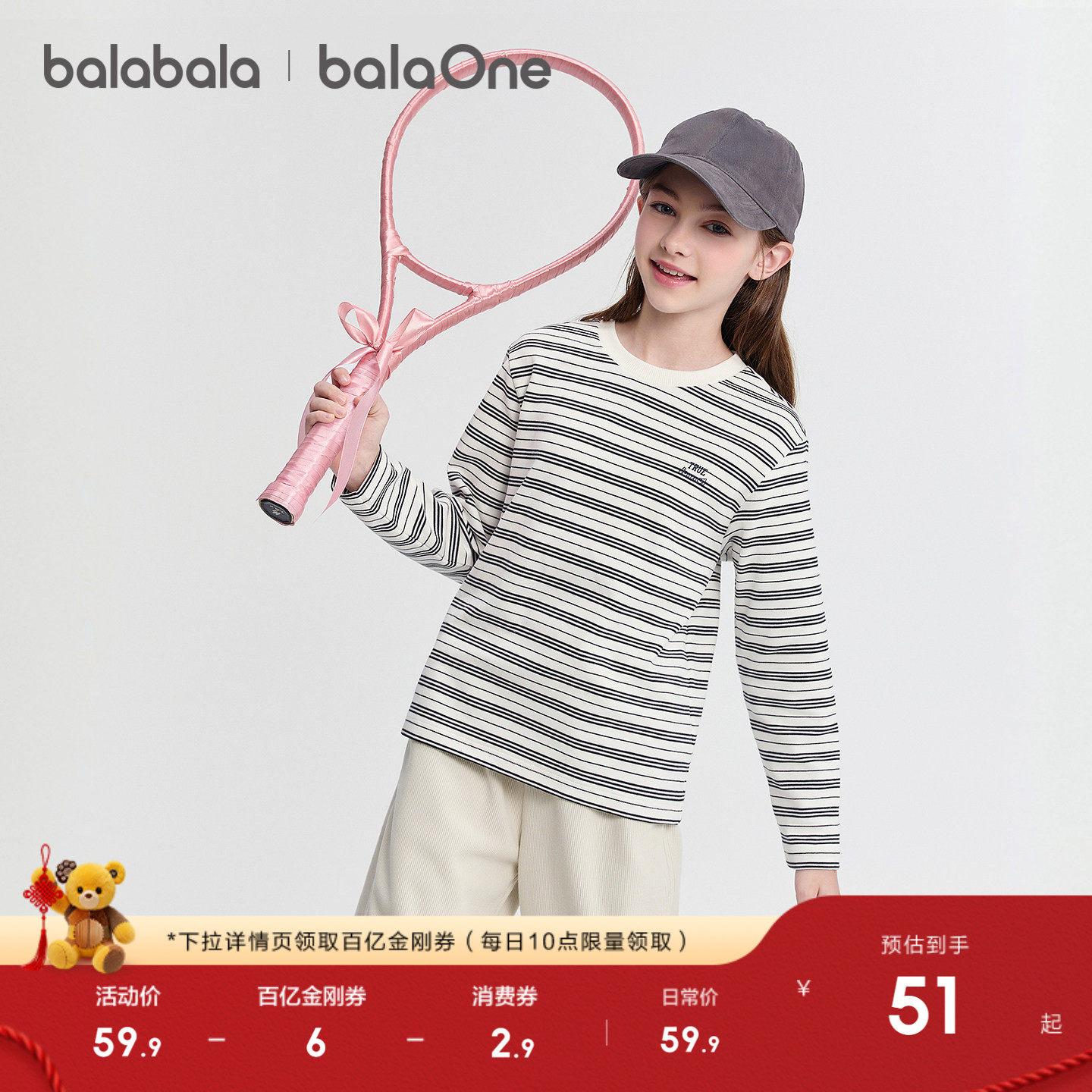 巴拉巴拉童装儿童长袖t恤男童女童2025新款秋冬装条纹打底衫上衣