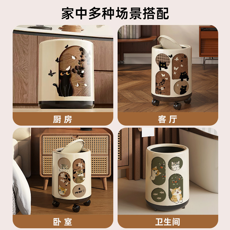 客厅垃圾桶家用2025新款高档翻盖大容量厨房卧室卫生间高颜值纸篓
