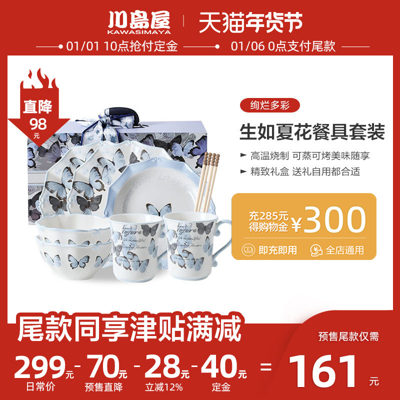 [年货节预售]川岛屋蝴蝶餐具碗碟礼盒套装高颜值乔迁新居新年礼物