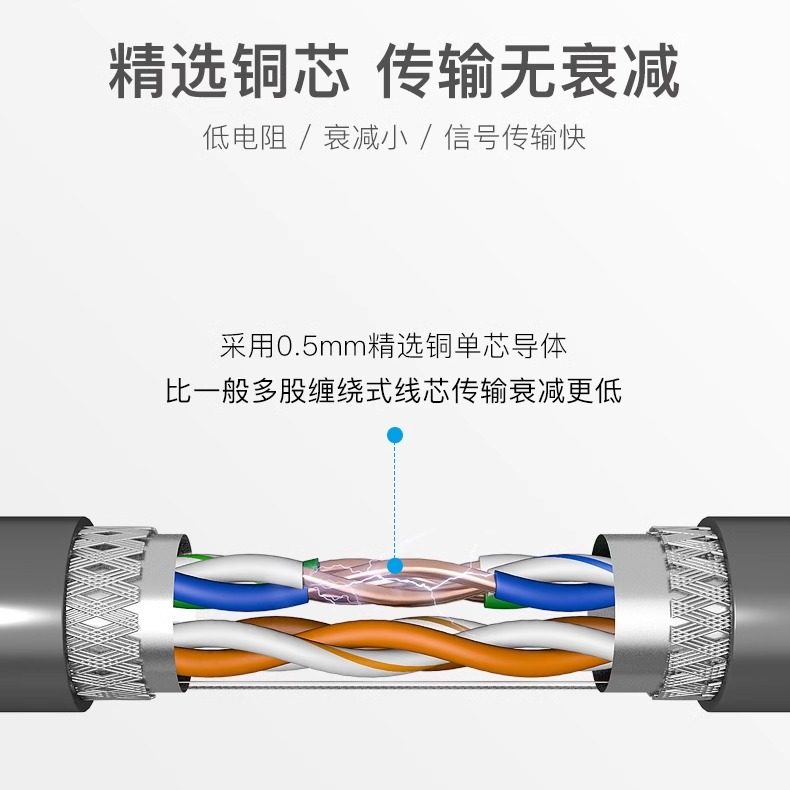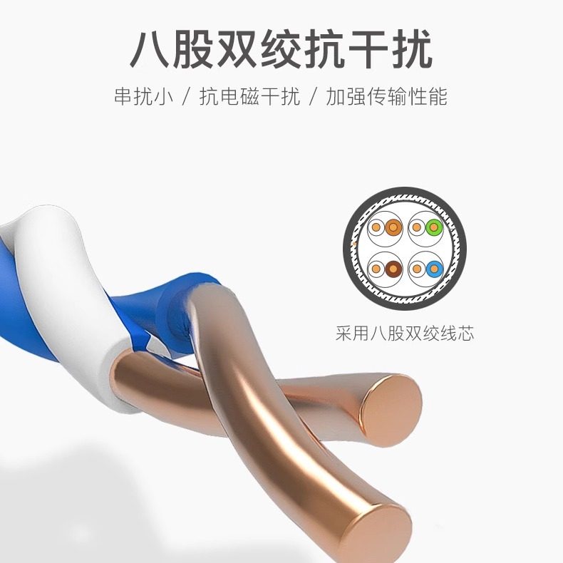 纯铜芯传输快 铝箔屏蔽层抗干扰 八芯双绞线
