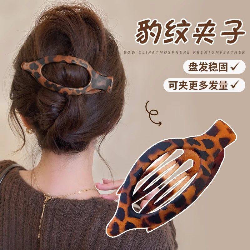 儿童盘发发鸭嘴夹发夹女后脑勺抓夹2025新款高端高级感豹纹
