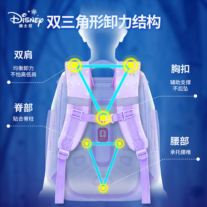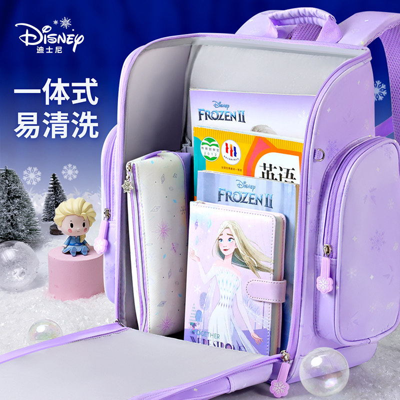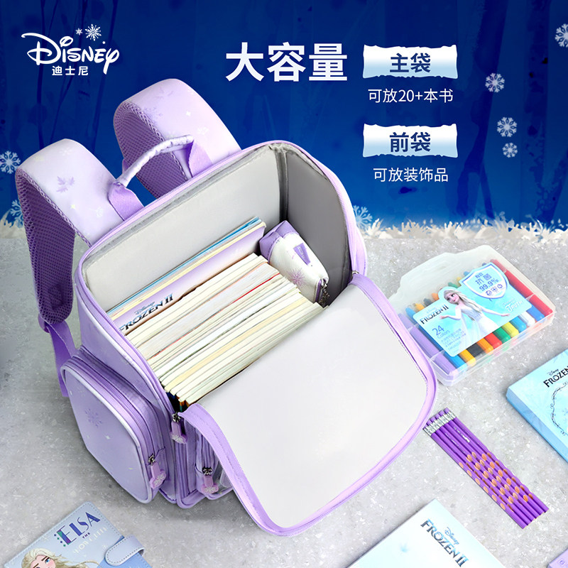 迪士尼书包小学生女孩礼盒书包翻盖大容量儿童护脊减负双肩背包