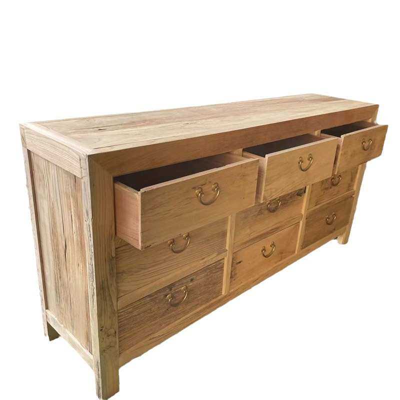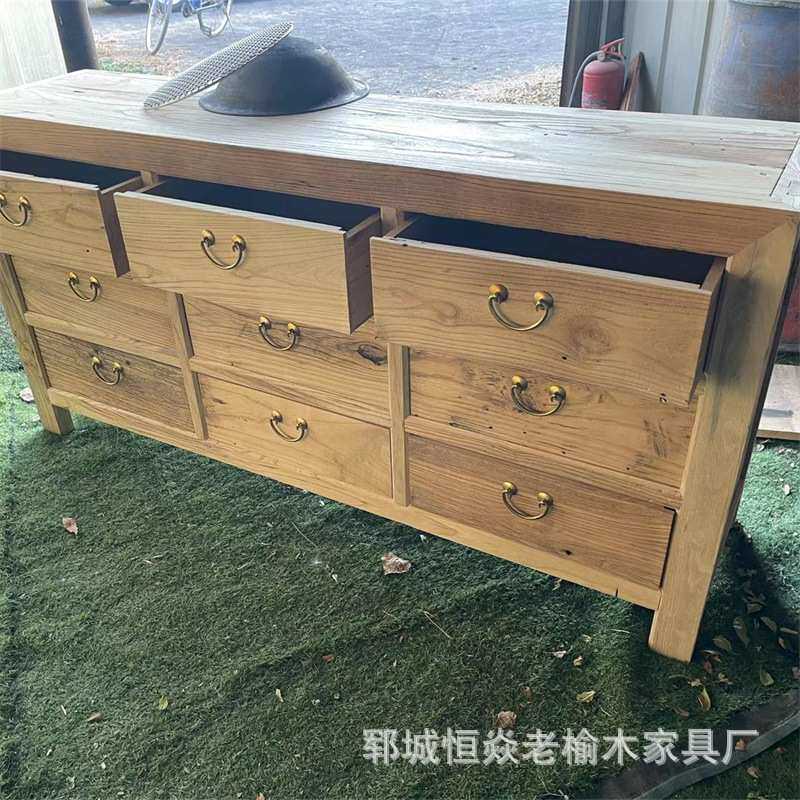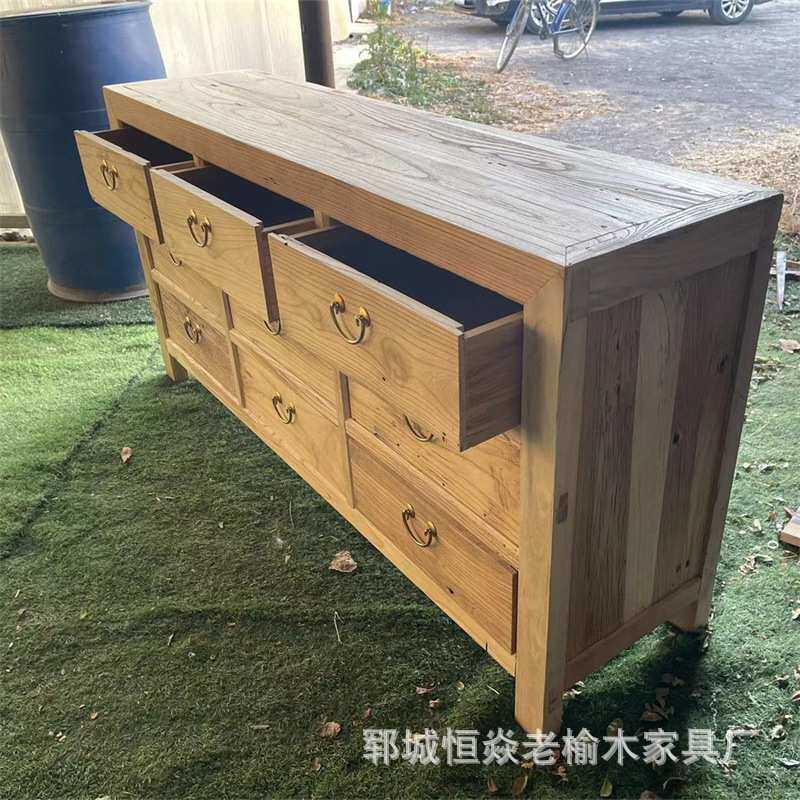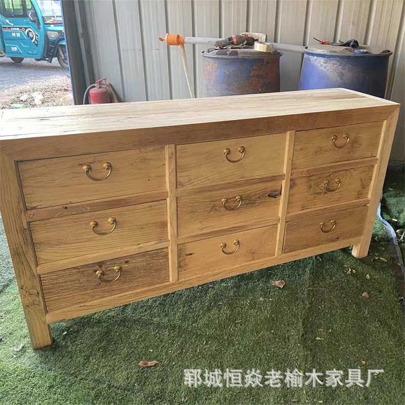 老榆木九斗柜家用储物柜抽屉收纳柜复古客厅靠前餐边柜榆木置物柜