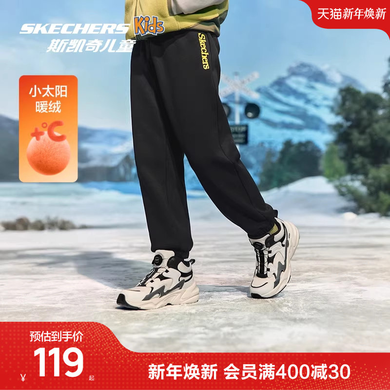 Skechers斯凯奇儿童加绒保暖针织长裤秋冬童装男女童舒适休闲裤子