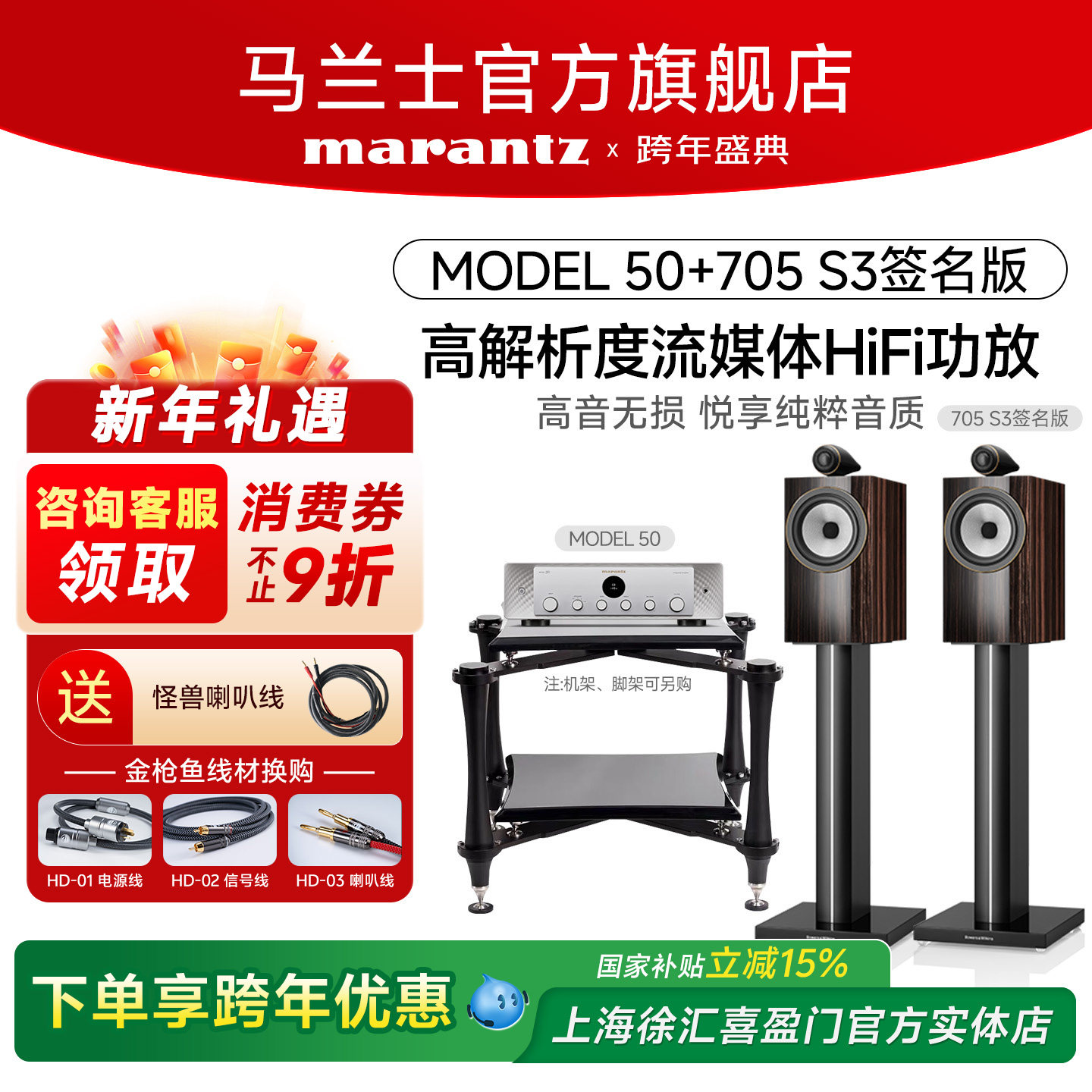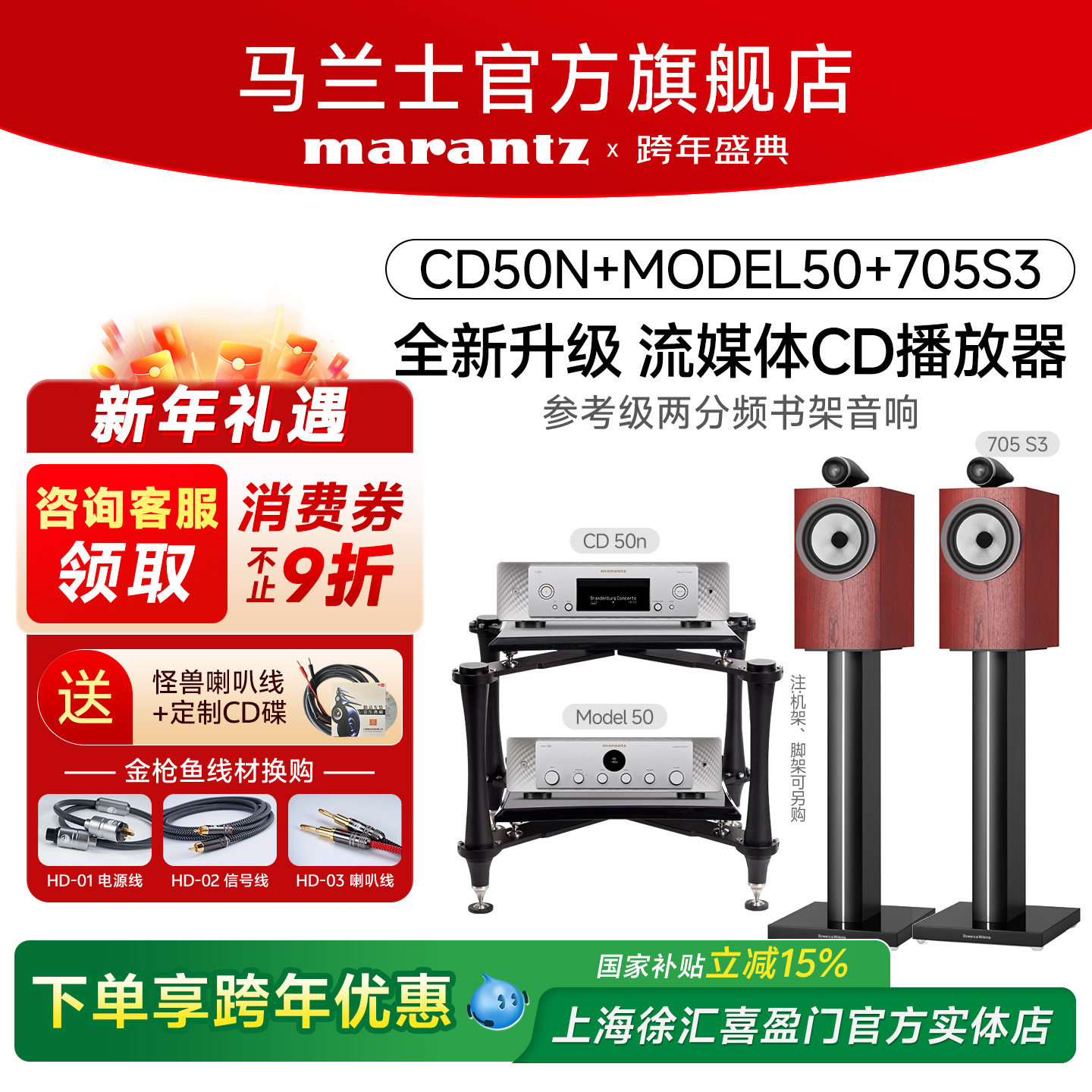 BW宝华韦健705S3无源音箱HiFi书架箱+马兰士网络蓝牙功放音响套装