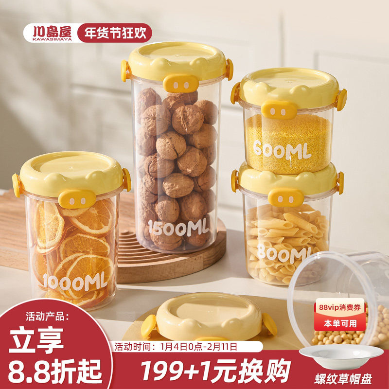 川岛屋食品级密封罐塑料五谷杂粮收纳盒坚果溶豆零食白糖储存罐子